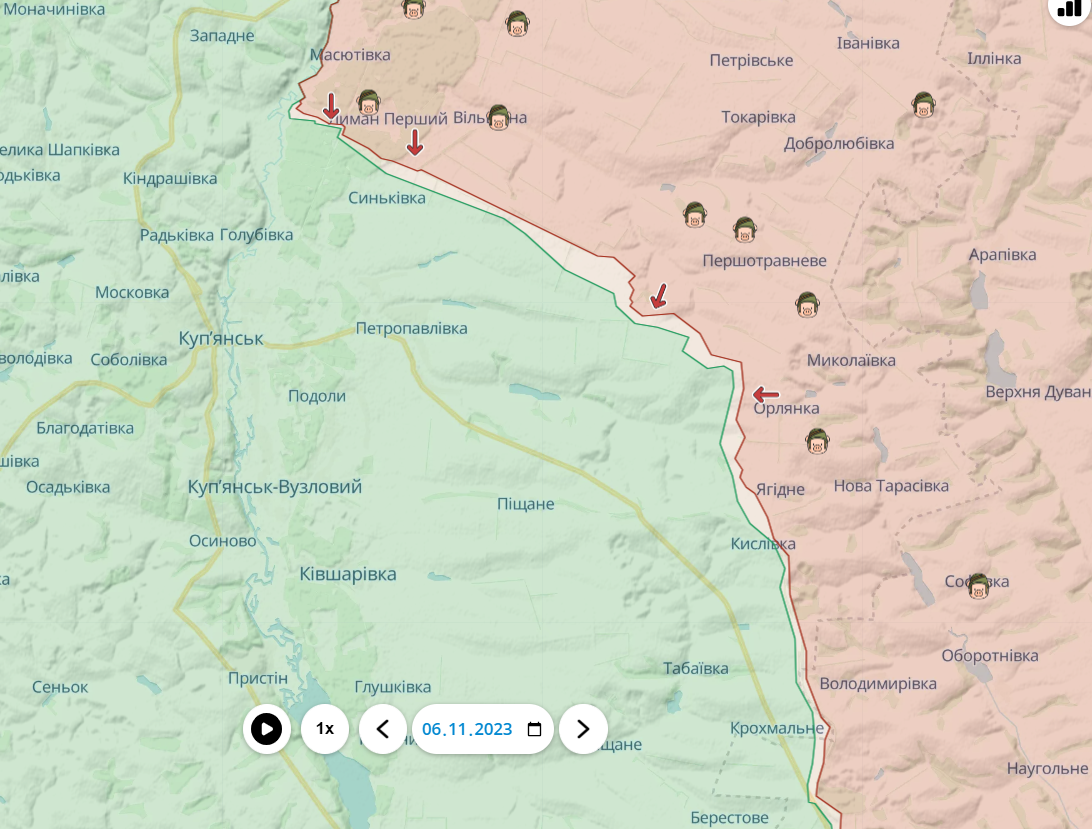 Так же продолжается российское наступление и на Купянском направлении. Правда, и здесь успехи врага разве что совсем минимальны. В течение прошлой недели россияне смогли несущественно улучшить тактическое положение на участках:
