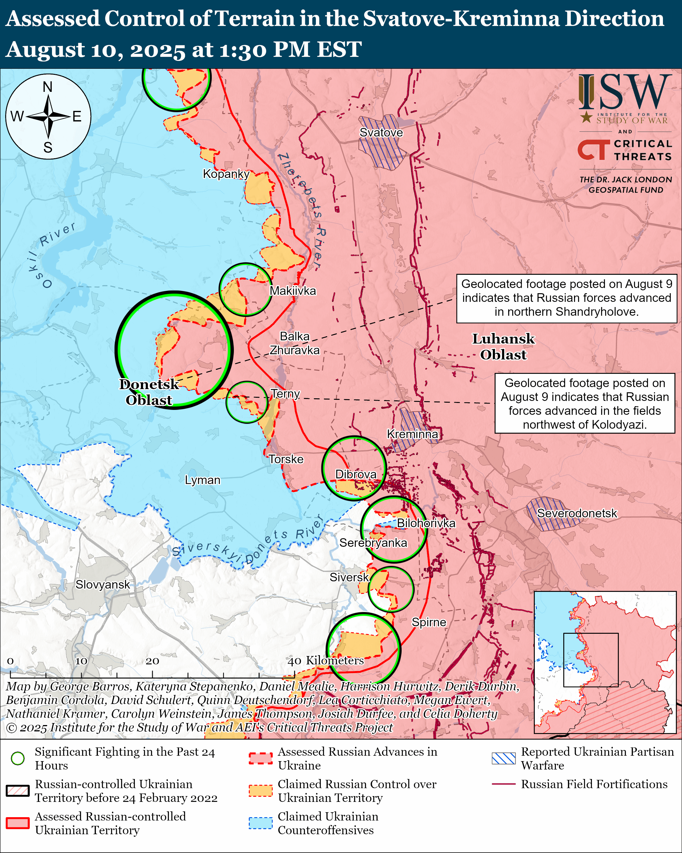 Подытоживая, 10 августа российские войска продвинулись вперед на нескольких направлениях фронта. В частности, вероятно, на отдельных участках на Покровском, Купянском, Лиманском и Торецком направлениях.