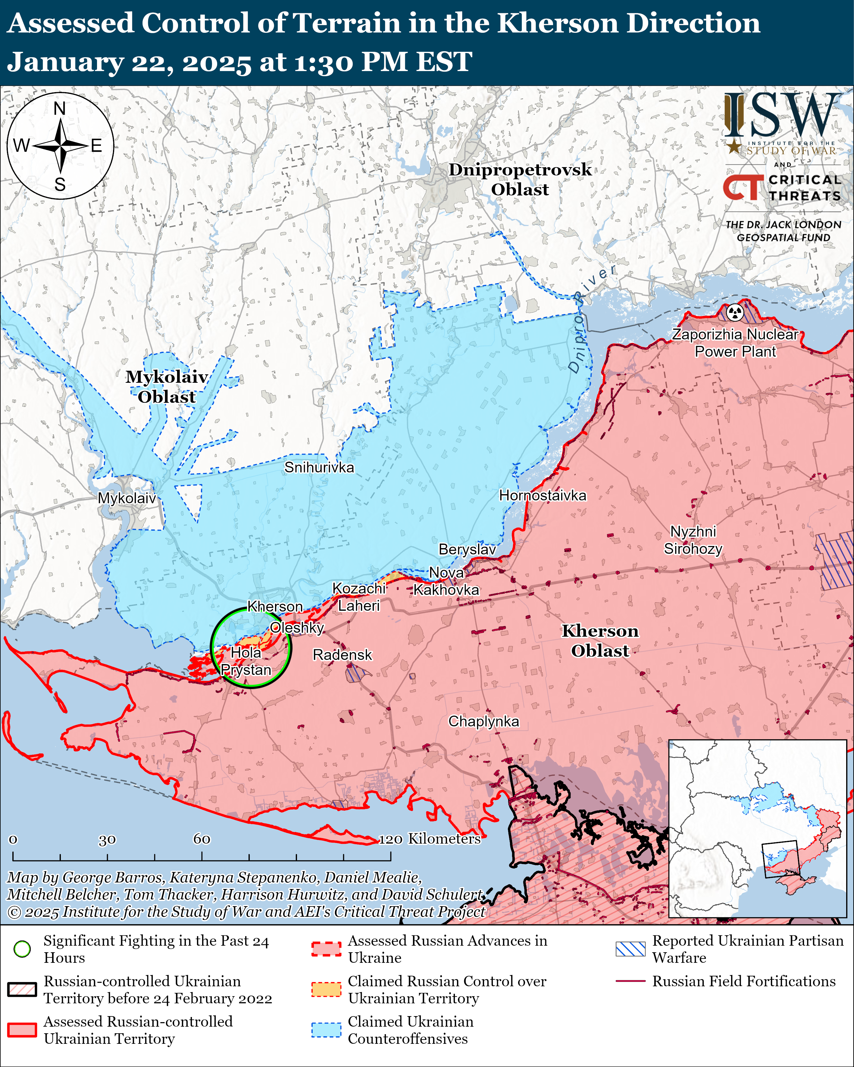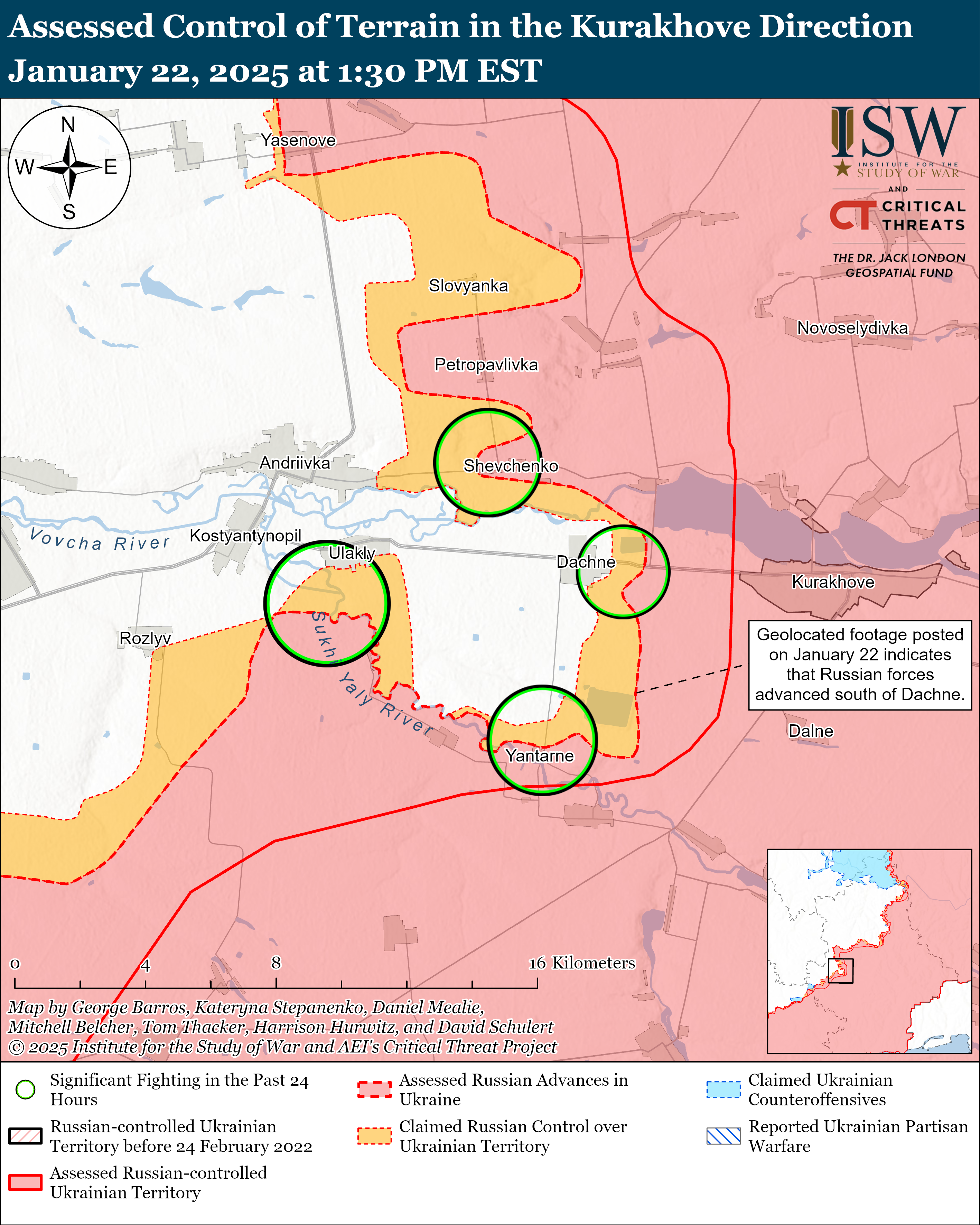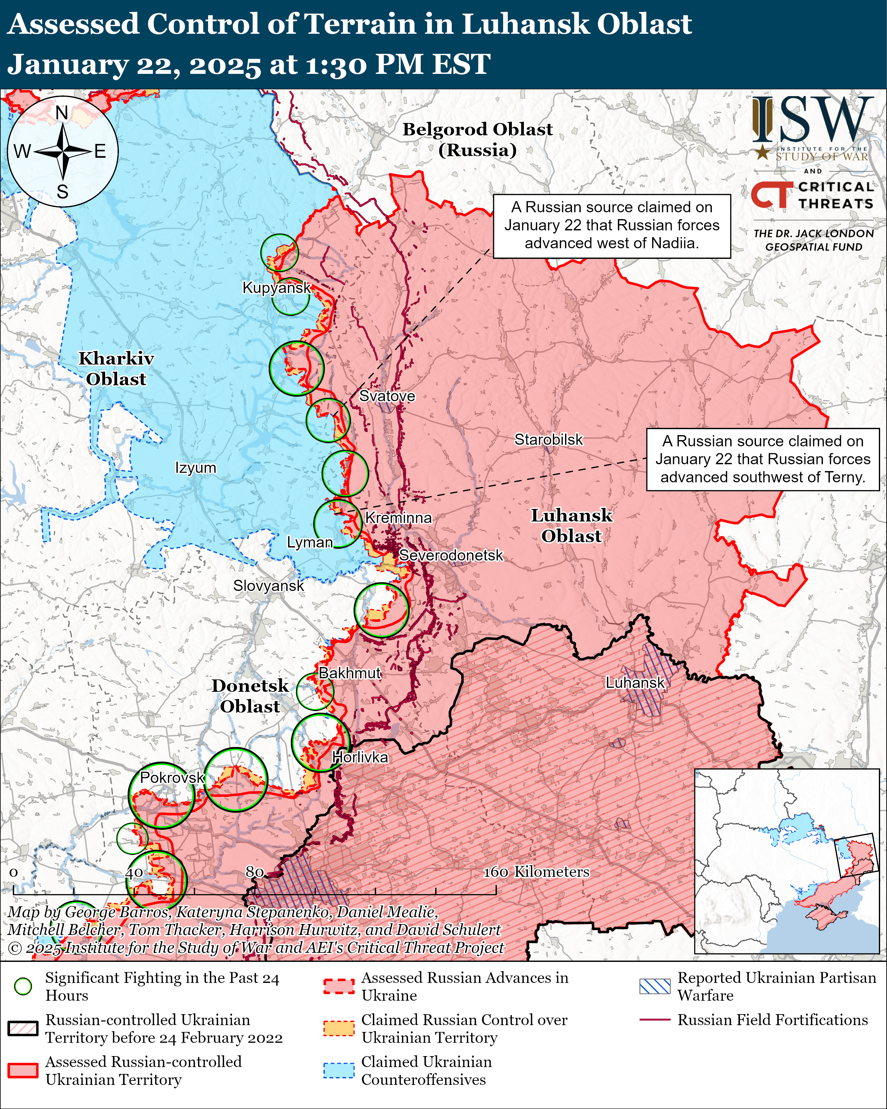 Боевые действия в Украине и России за 22 января / Карты ISW
