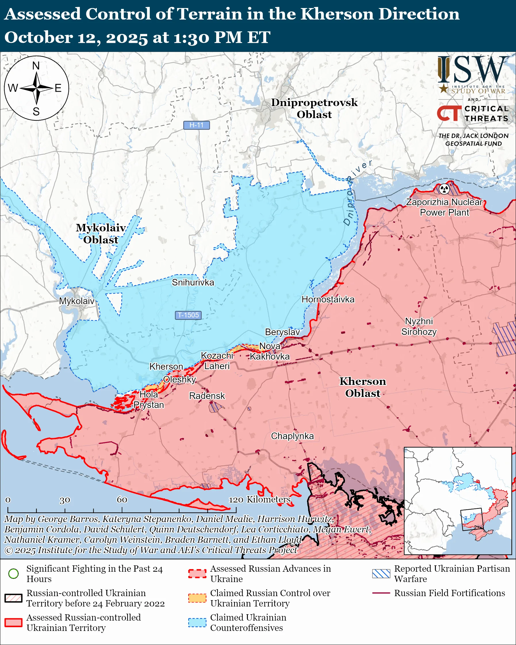 - 12 октября российские войска осуществляли ограниченные атаки на Херсонском направлении, однако без продвижения.