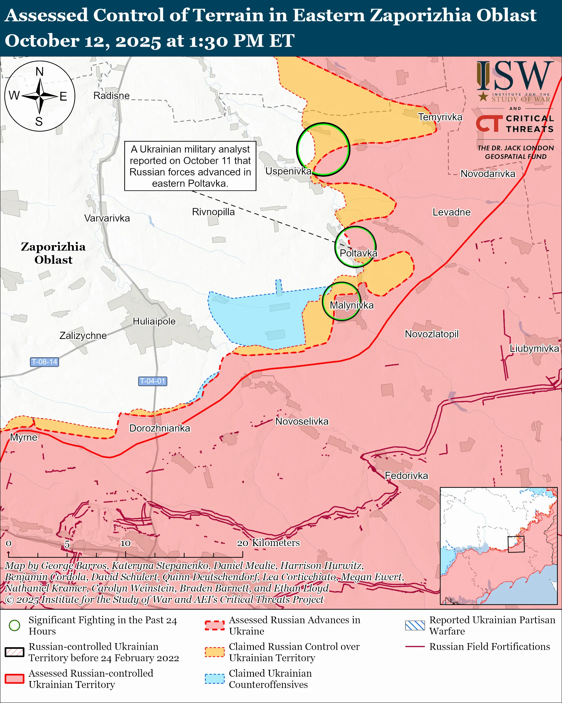 - 12 октября российские силы продолжали наступательные операции на направлении Новопавловки, однако без результатов.