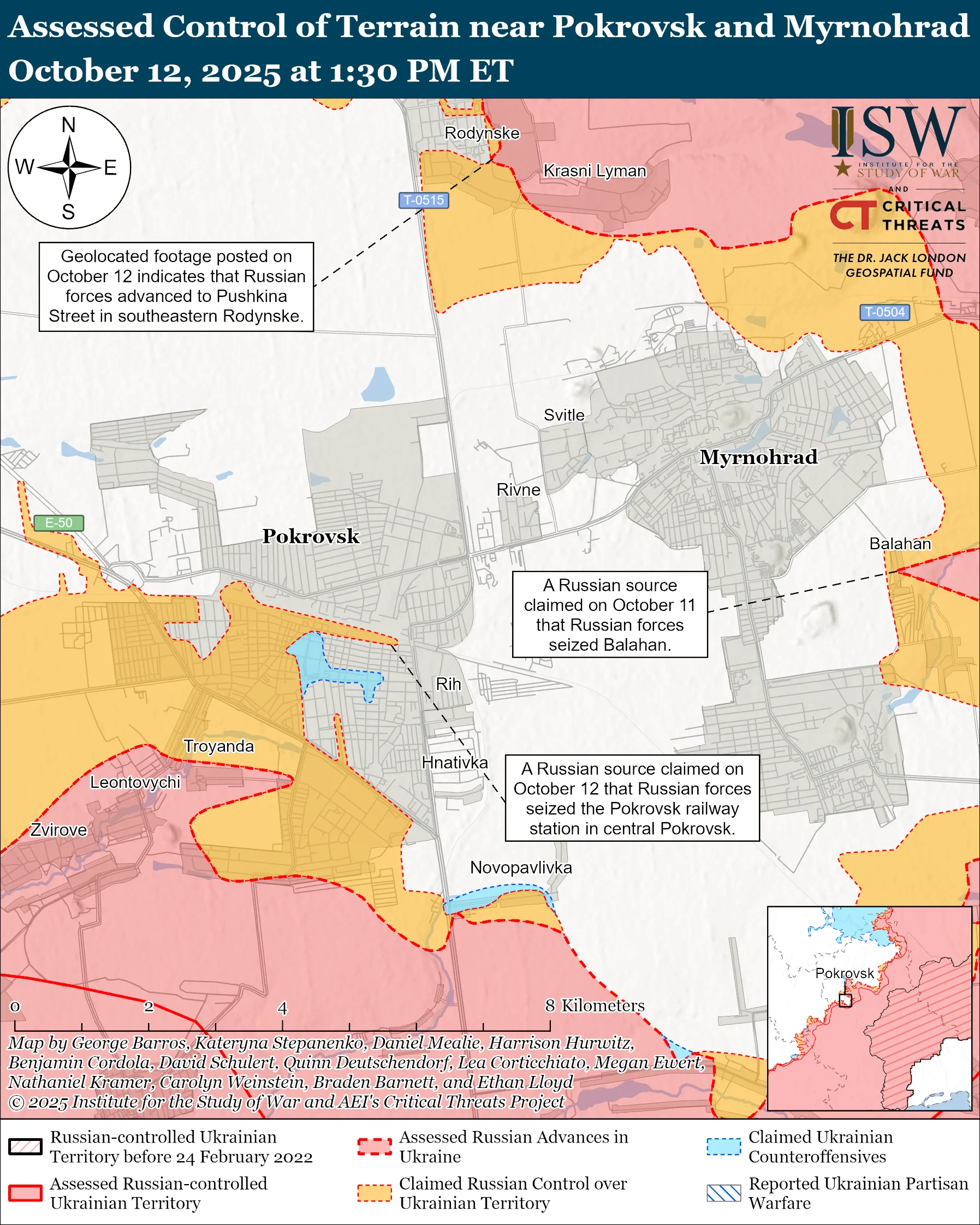 - Российские войска недавно достигли продвижения на Покровском направлении. Геолокационные материалы, обнародованные 12 октября, свидетельствуют, что российские подразделения продвинулись на юго-востоке Родинского, расположенного к северу от Покровска.