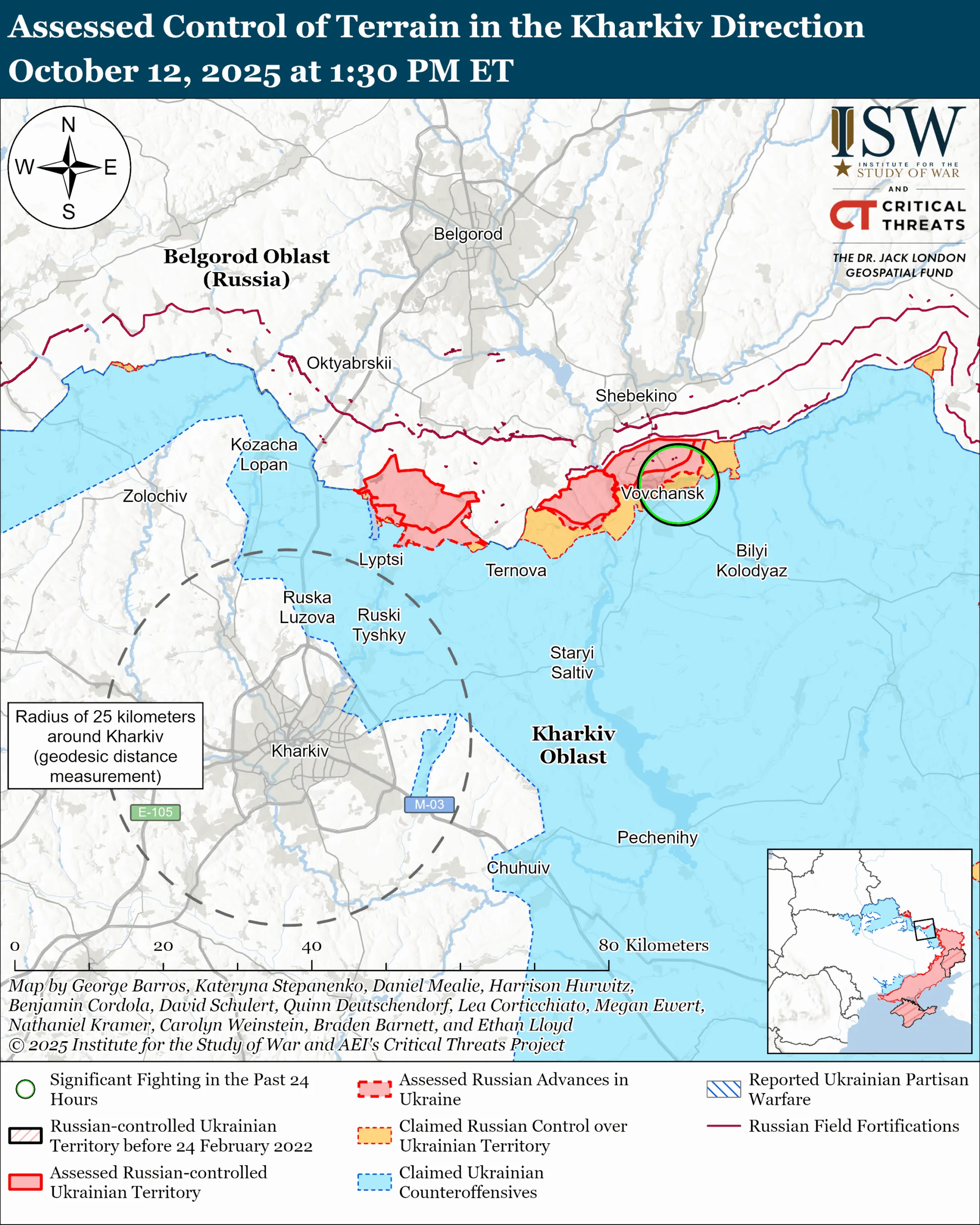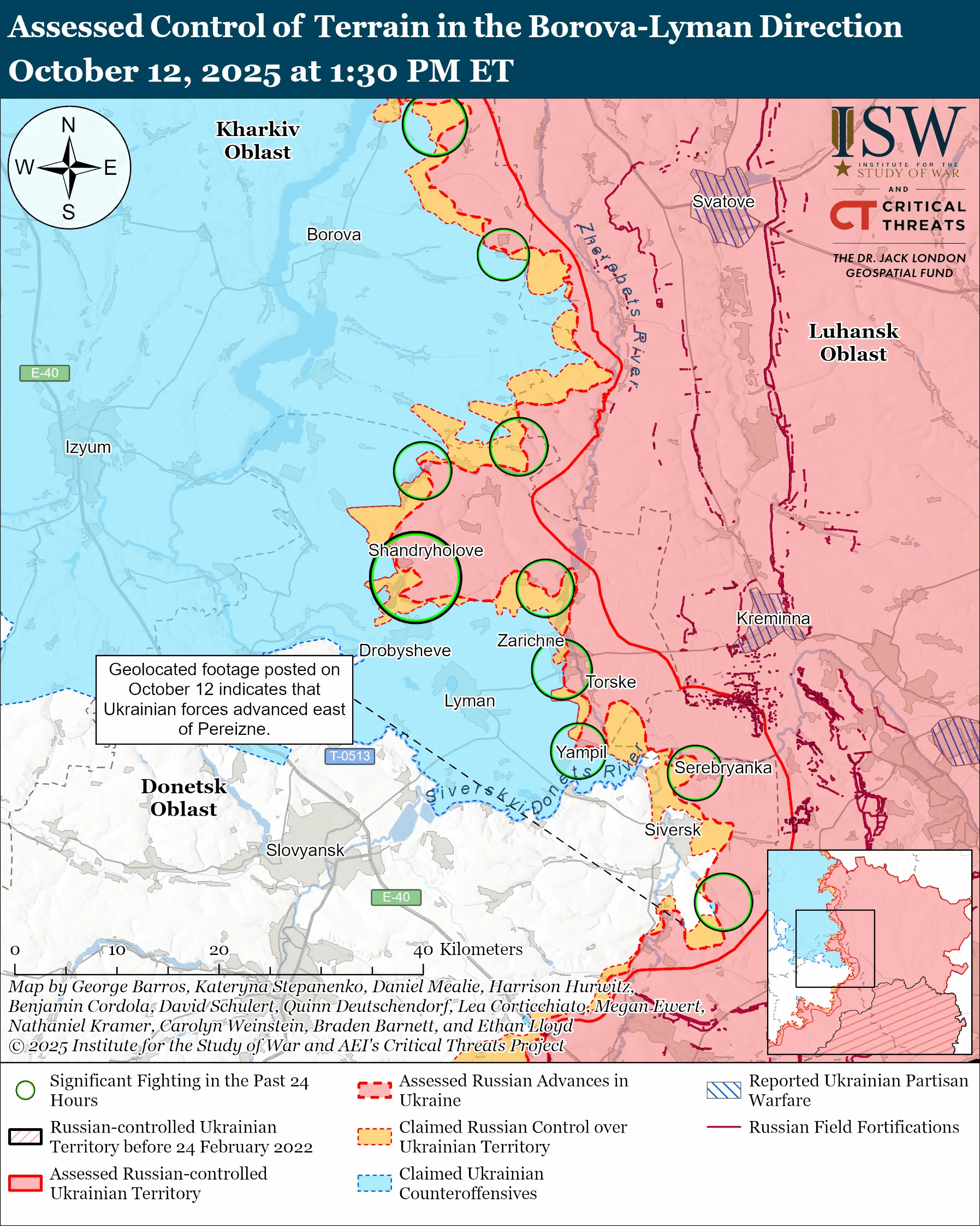 - 12 октября российские подразделения продолжали наступление на направлении Великого Бурлука, но не достигли никакого продвижения.