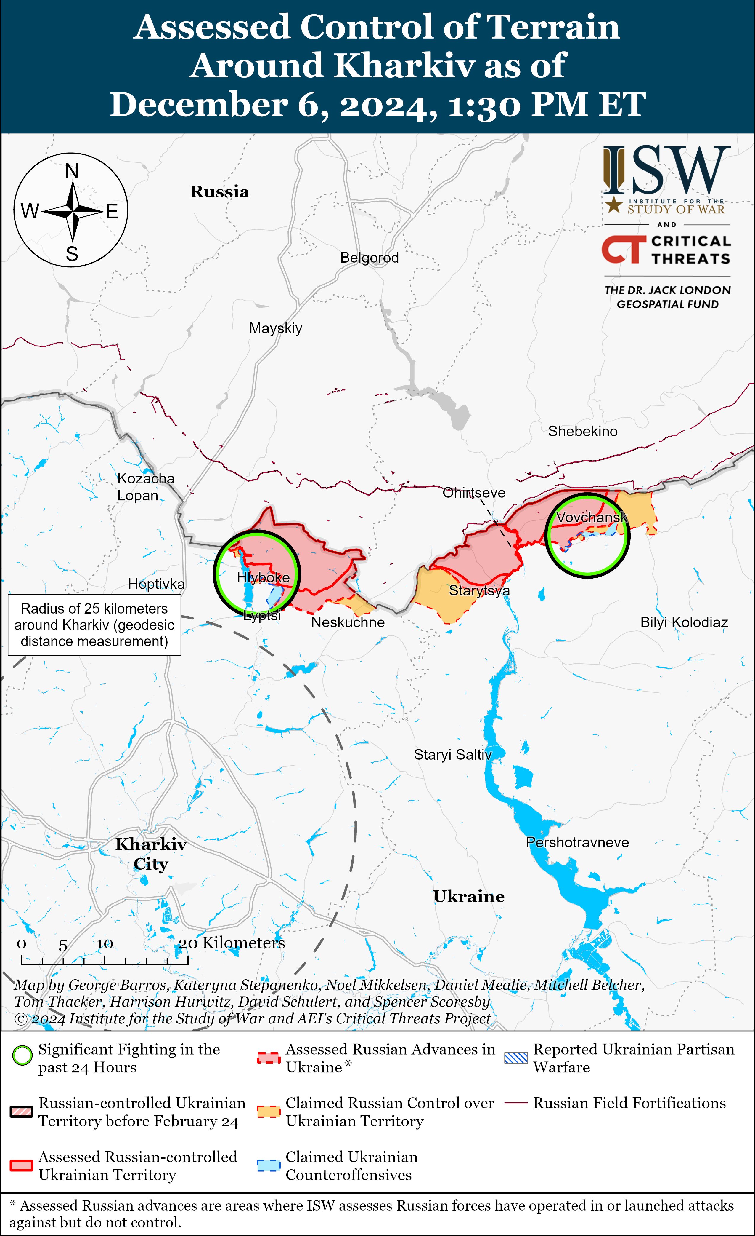 На Харьковском направлении враг продолжил попытки наступления, однако успеха не достиг. Российские военкоры утверждали, что оккупанты имели продвижение в Волчанске, однако Институт не имеет никаких подтверждений этому. Также враг писал, что украинские силы якобы пытались провести контратаки в Волчанске и вблизи Старицы.