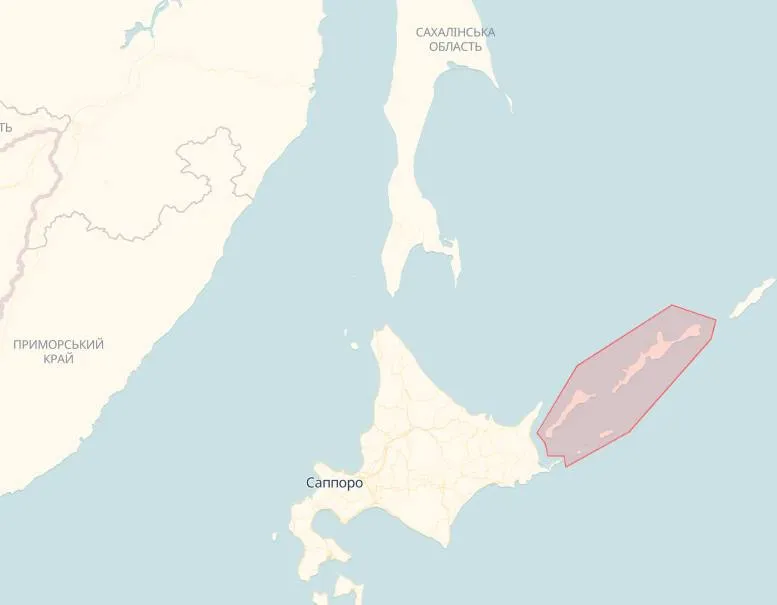 Красным на карте обозначили Курильские острова, которые Россия считает своими, хотя все понимают, что это территория Японии