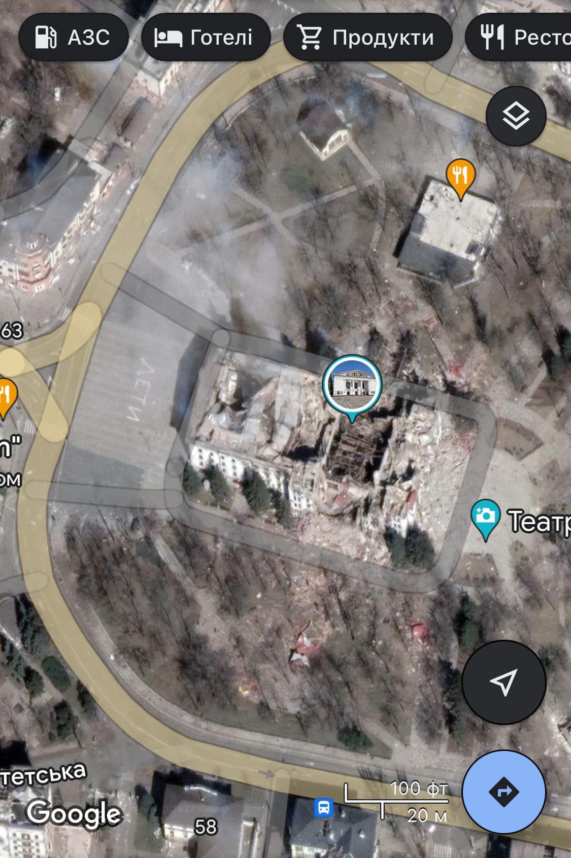 Надпись "Дети" возле драмтеатра в разрушенном Мариуполе стала доказательством того, что Россия сбрасывает бомбы на гражданские объекты / Скриншот