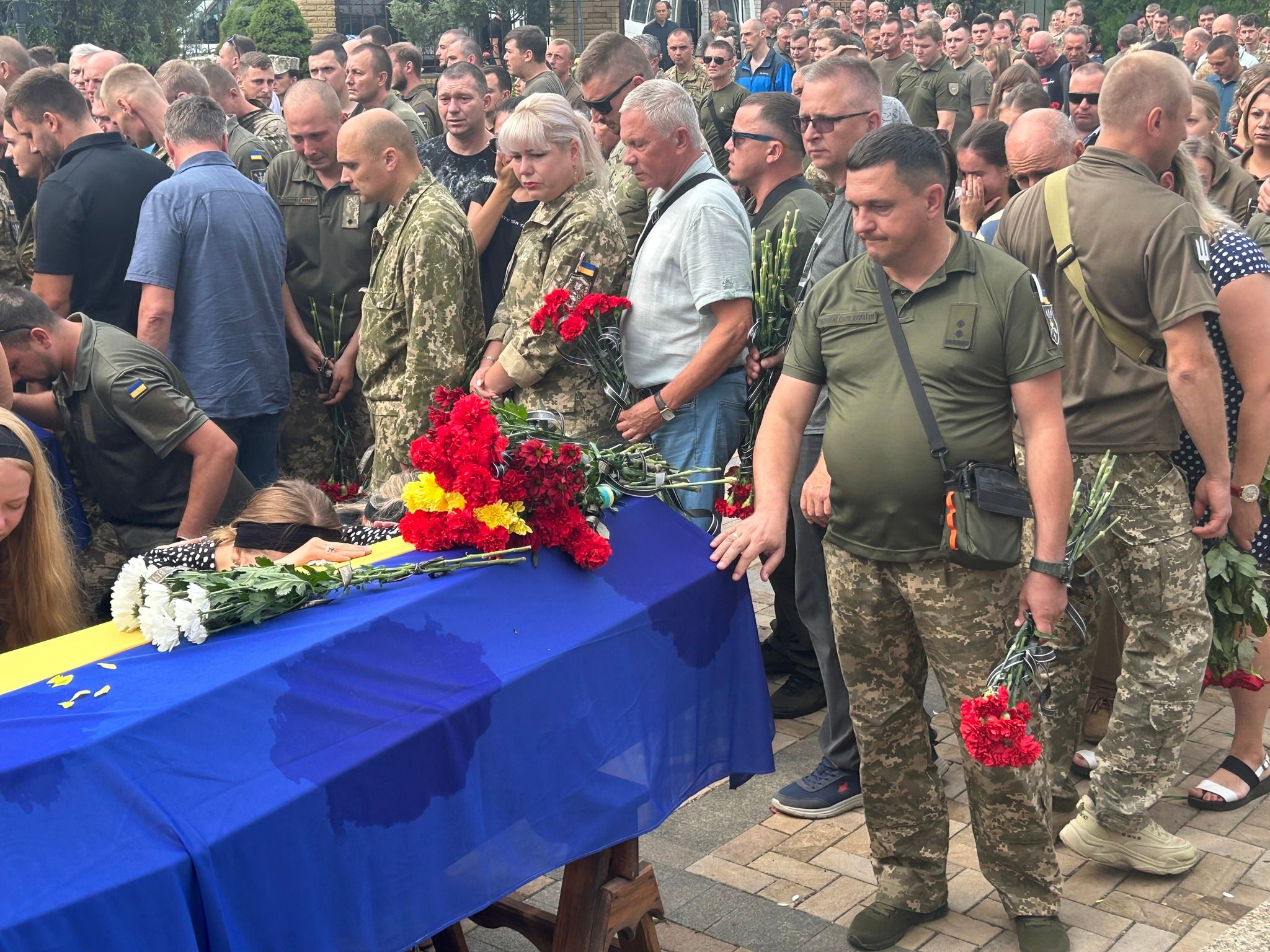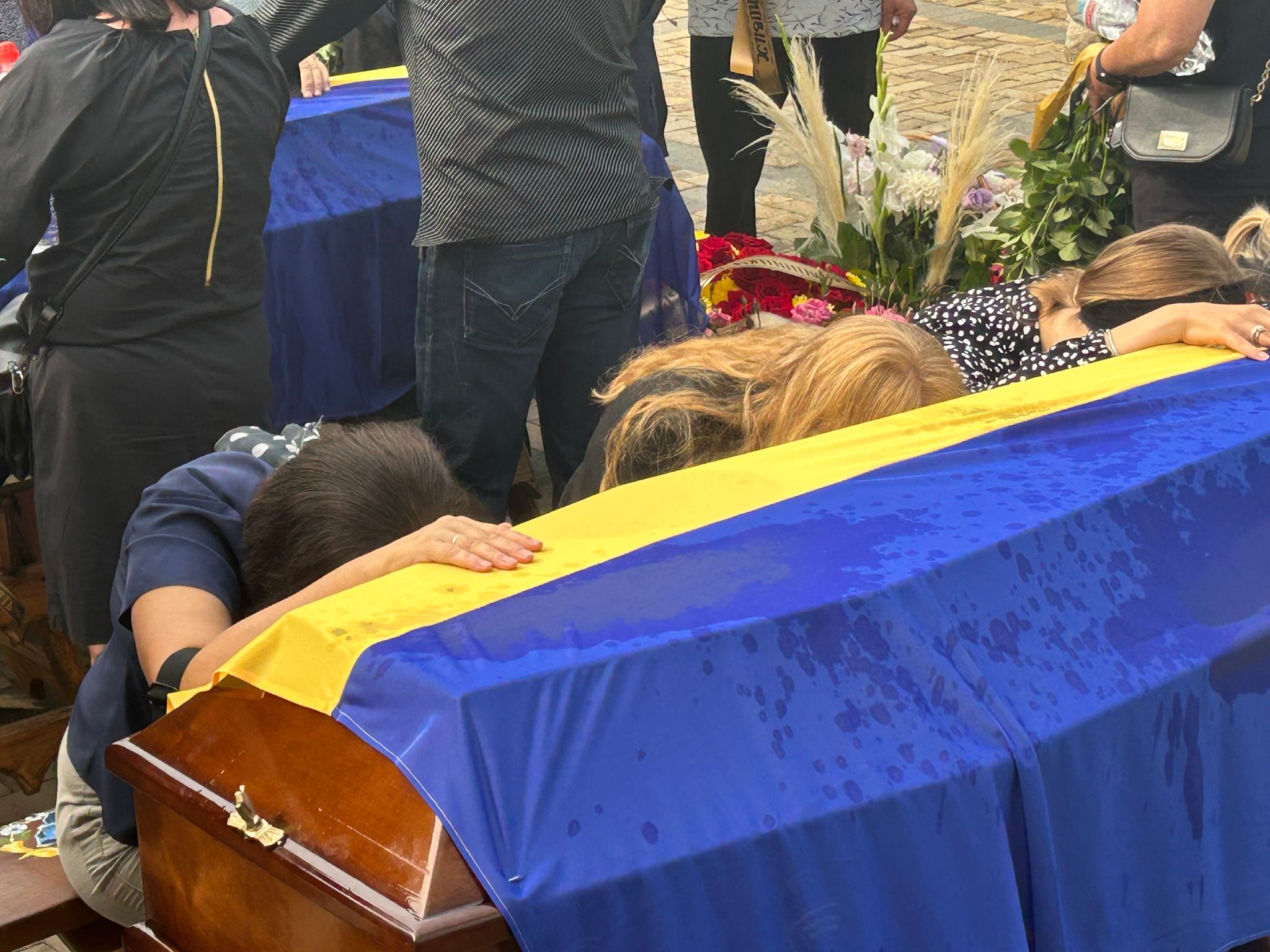 Здесь мамы с глазами, которые уже, кажется, ничего на свете не видят. Жены и невесты, которые держатся за гробы, как будто это последнее, за что можно держаться. Отцы, которые пытаются закрыть лицо руками. Побратимы и сестры, которые не привыкли рыдать, но сегодня невозможно удержаться,