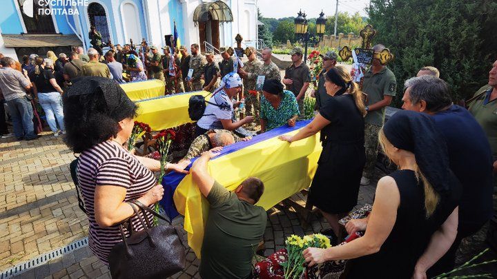 Как сообщило "Суспильне", панихида за павшими защитниками началась около десяти в Храме Рождества Пресвятой Богородицы ПЦУ в селе Горбановка Щербановской общины в Полтавской области. Пришли родные, знакомые и собратья павших бойцов. Гроб накрыли украинскими флагами.