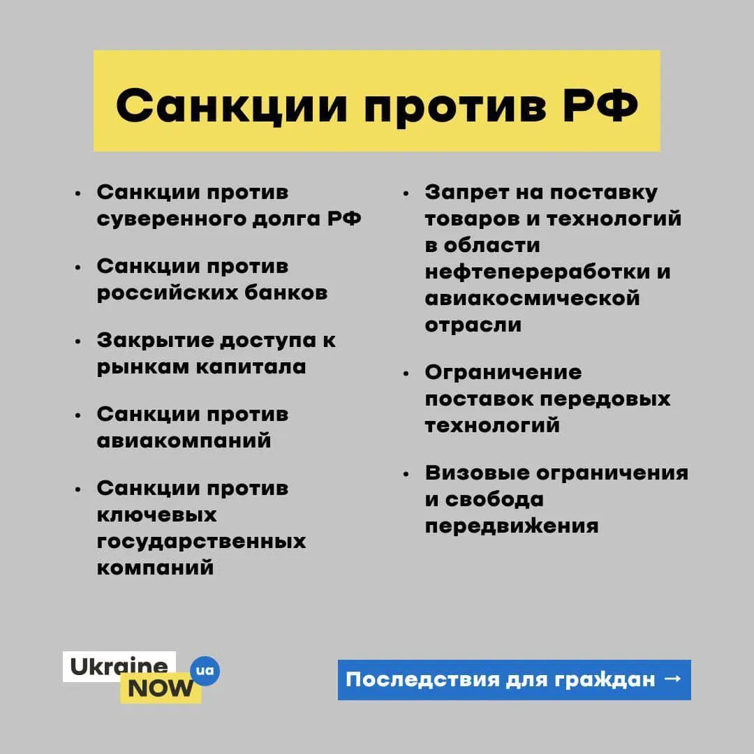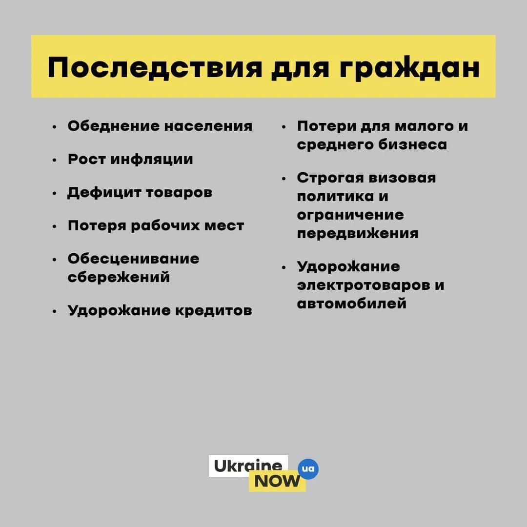 Санкции, которые ждут россиян / инфографика Ukraine NOW