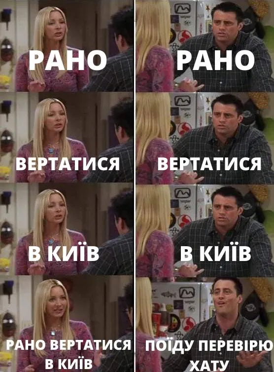 Чтобы немного добавить положительных эмоций в это сложное для каждого украинца время, просьбу выразили в шутливой картинке. Военная администрация использовала курьезный момент с Фиби и Джоуи из культового сериала "Друзья".