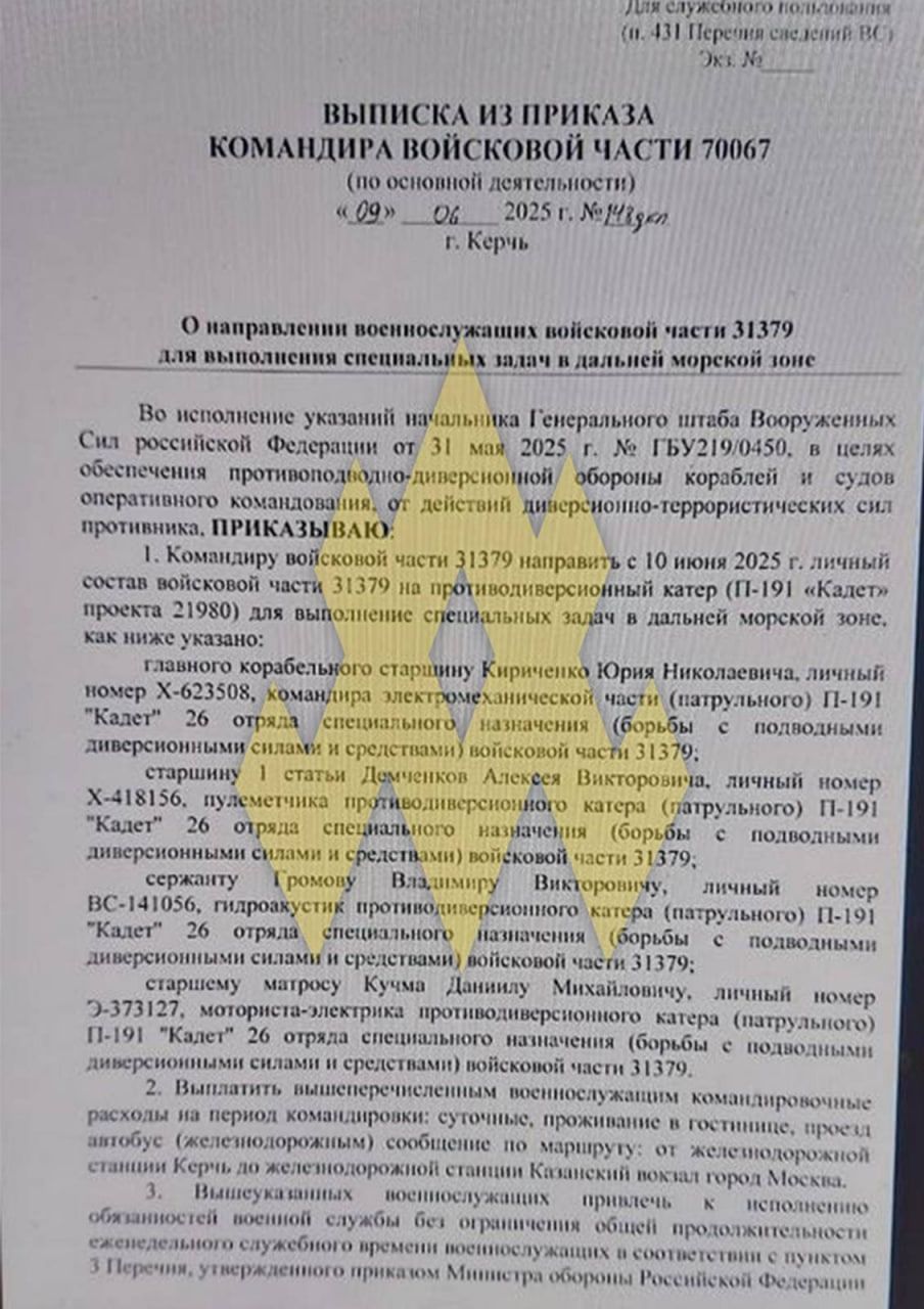 Специалисты "Кибер-Атеш" специалисты получили засекреченные документы Черноморского флота России, в которых указано боевое дежурство катеров сопровождения, прикрывающих теневой флот с нефтью.