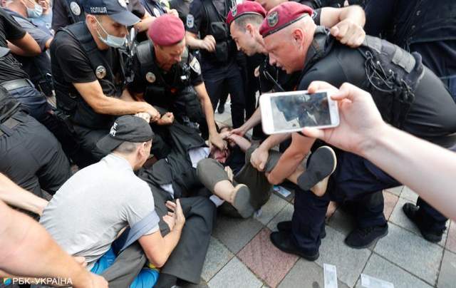Силовики попытались задержать участника акции, ведь увидели в его действиях правонарушение. Однако парень не хотел слушаться правоохранителей и начал сопротивляться. Как следствие – между силовиками и участниками акции произошла небольшая потасовка.