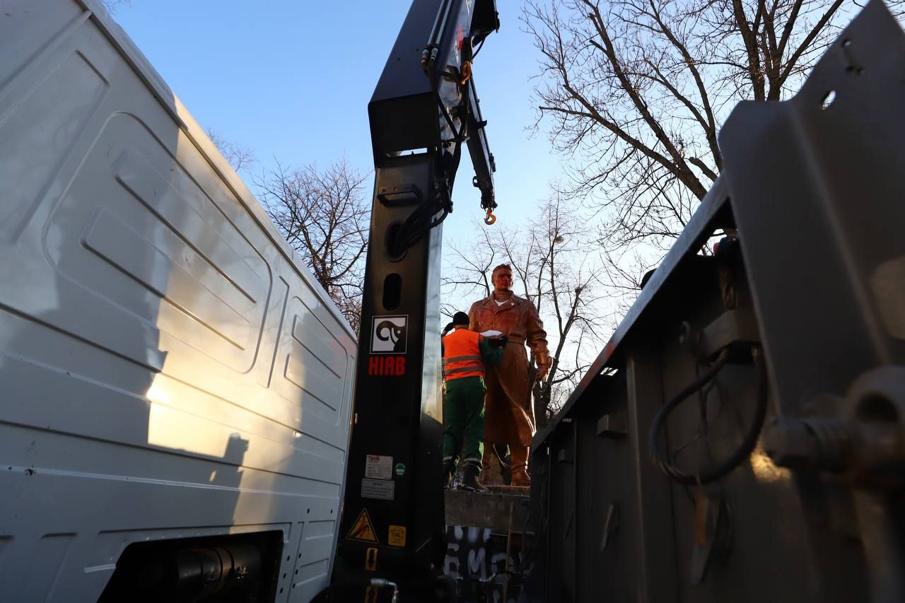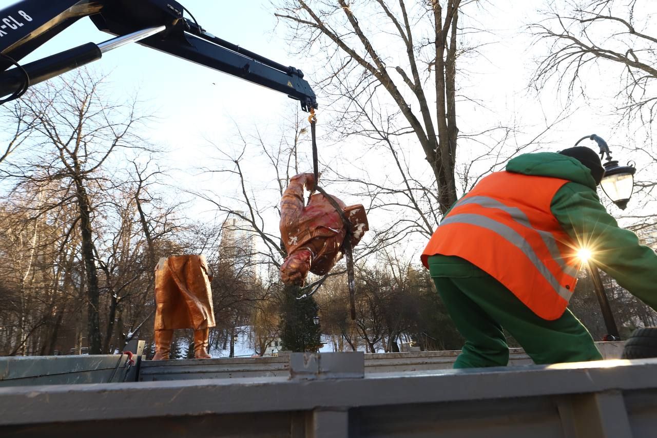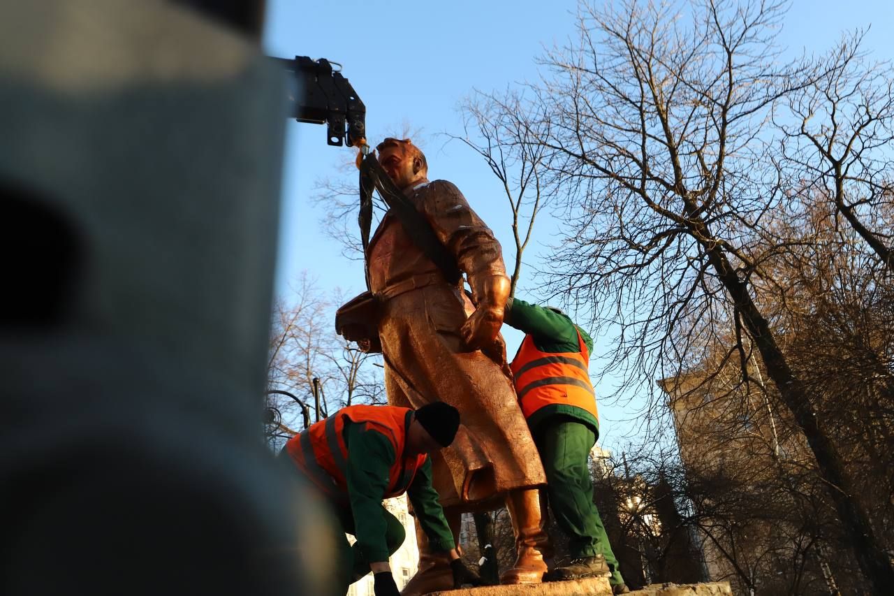 Над демонтажем памятника работали коммунальщики из Шевченковского района. Чтобы убрать монумент, посвященный Чкалову, работали пять человек, автомобиль с краном-манипулятором, а также грузовик.