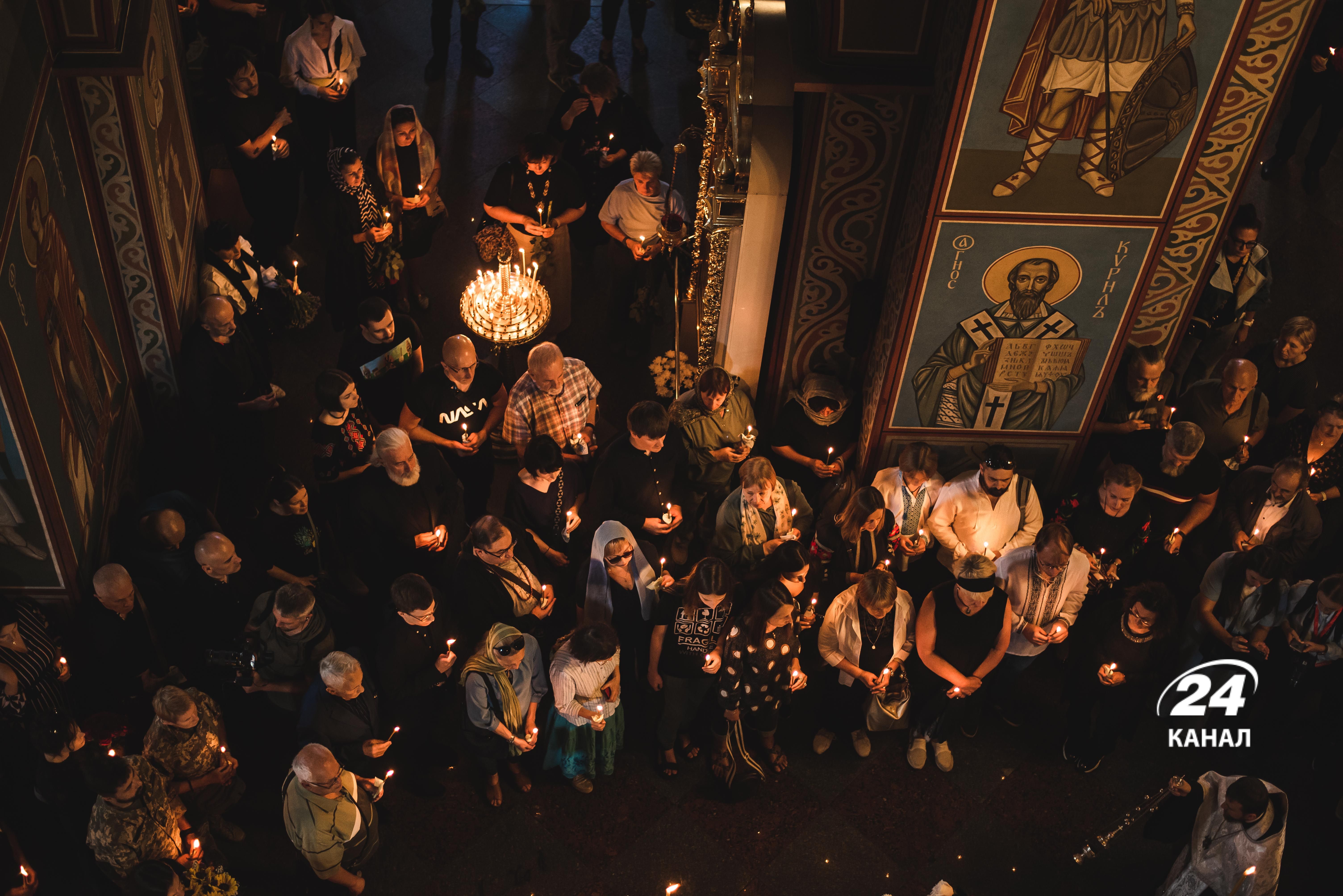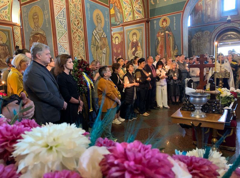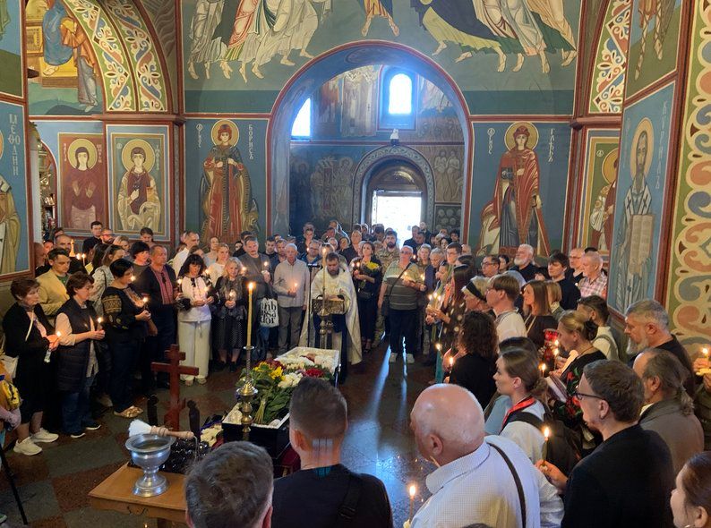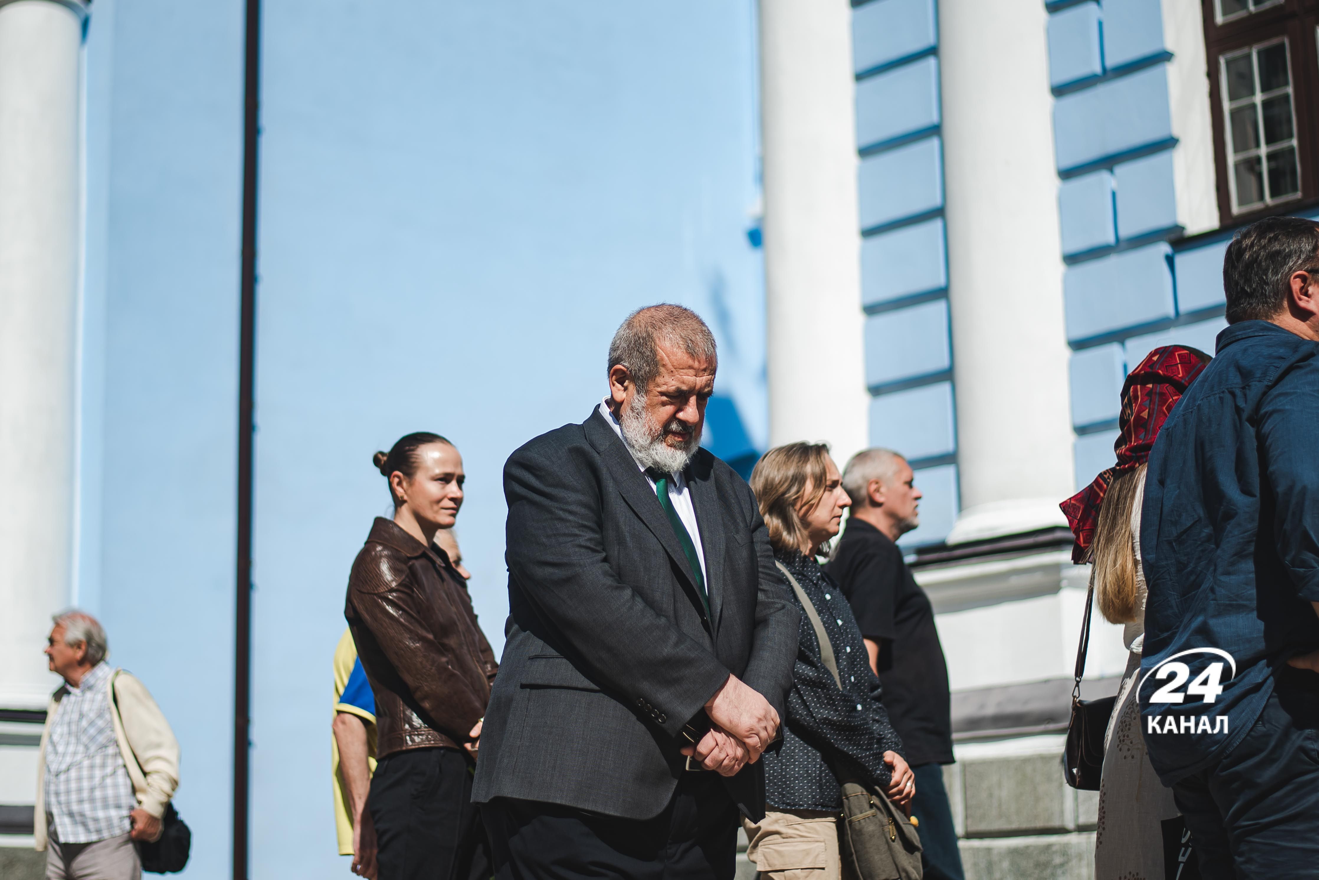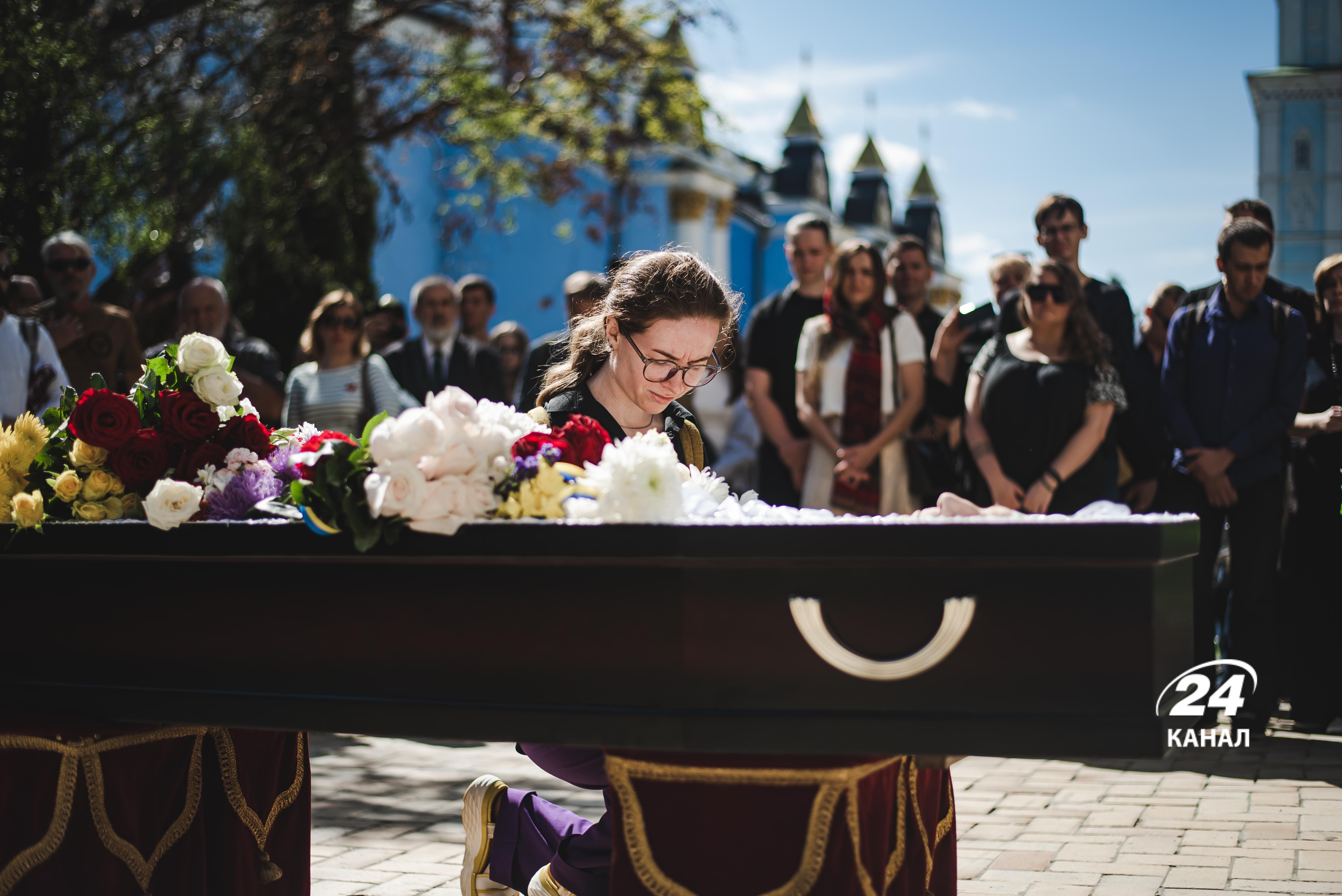 Уже в 13 часов во дворе Михайловского собора началась процессия прощания с религиоведом. Люди приносили цветы и отдавали последний почет умершему украинцу.