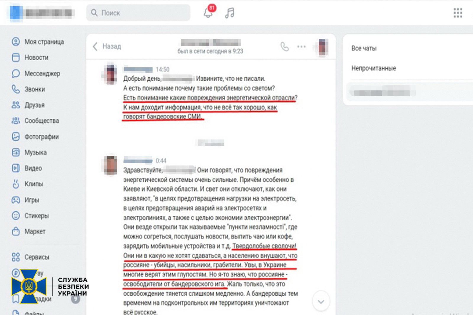 Так, злоумышленник передавал российским "журналистам" вымышленную информацию о событиях в Украине, в частности о якобы обострении внутренней обстановки в Киеве после российских ракетных ударов по городу.