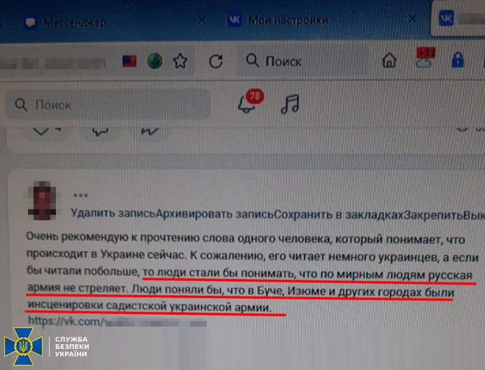 В настоящее время СБУ сообщила злоумышленнику о подозрении по статье об оправдывании, признании правомерной, отрицании вооруженной агрессии России в Украине. Продолжается расследование.