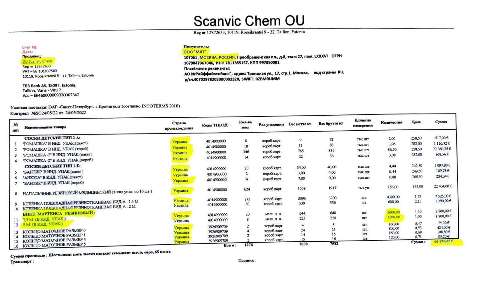 Хотя в компании и заявят, что поставляли товары тактической медицины исключительно в Эстонию, на самом деле прибалтийская фирма была лишь "прокладкой". К примеру, директор отдела логистики "Киевгумы" Татьяна Мысак напрямую общается с представителем российского ООО "МКТ".