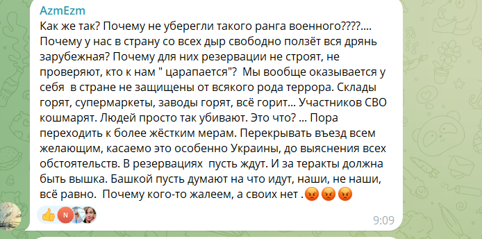 Так называемые "обычные" россияне в комментариях к новости об убийстве Кириллова не сдерживают гнев. Их возмущает тот факт, что военный преступник был убит прямо в сердце страны-агрессора. Некоторые скрыто восхищаются работой украинских спецслужб и сетуют на то, что офицера не охраняли так, как нужно было. Большинство, конечно, желает мести.