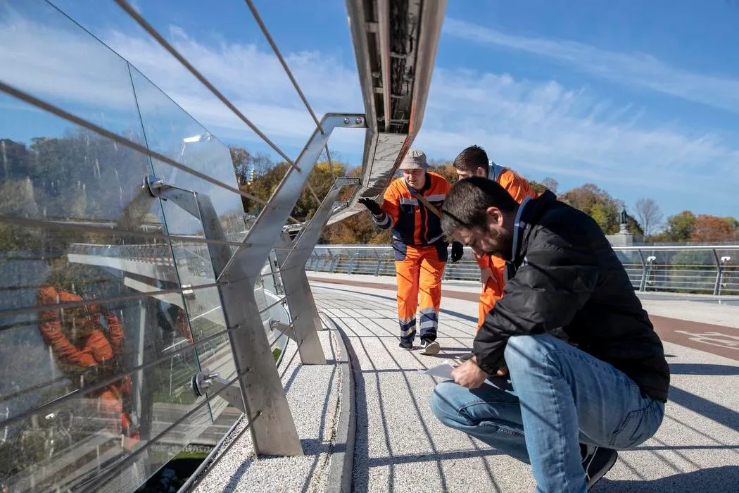 Специалисты провели осмотр пешеходного моста / Фото Виталия Кличко