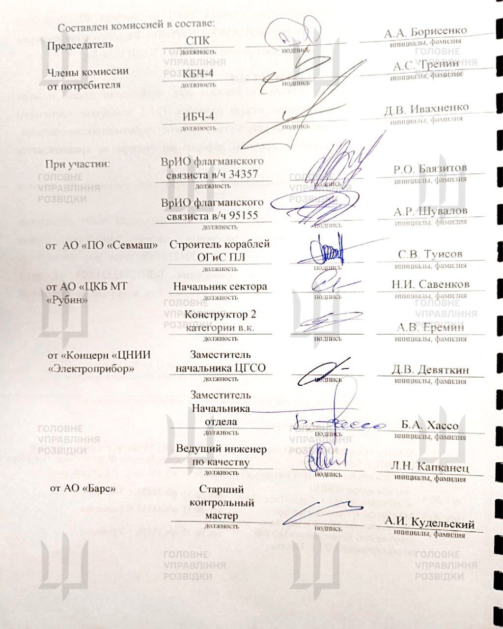 - инженерная документация, в частности акт исследования деформированного радиобуя с указанием членов комиссии и предприятий, участвовавших в исследовании.
