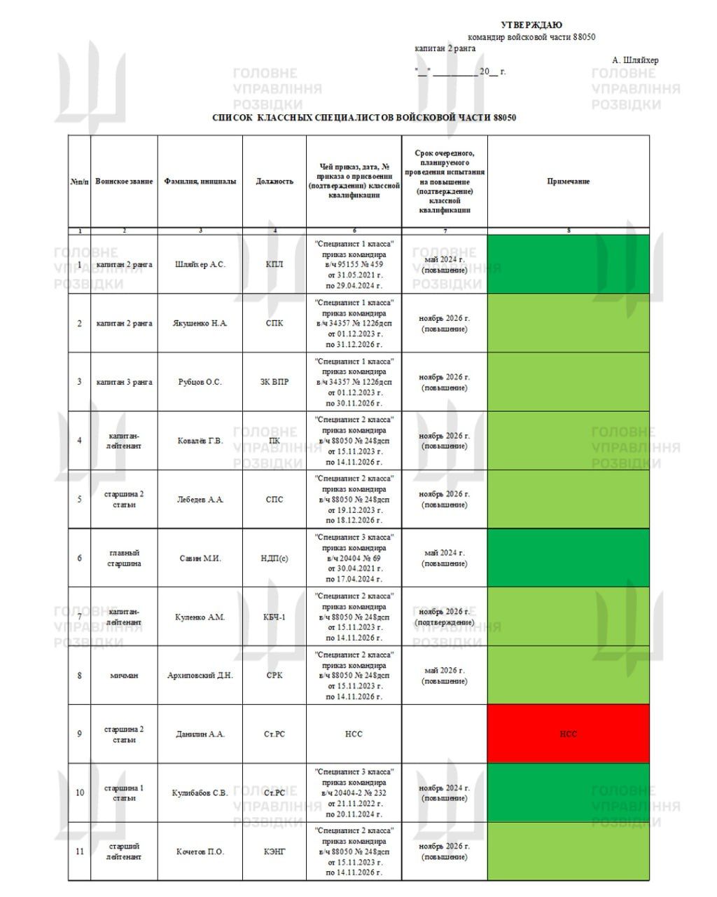 Кроме того, ГУР получили выписку из книги корабельных расписаний "Пожарского", которая регулирует ежедневную боевую и повседневную работу судна.