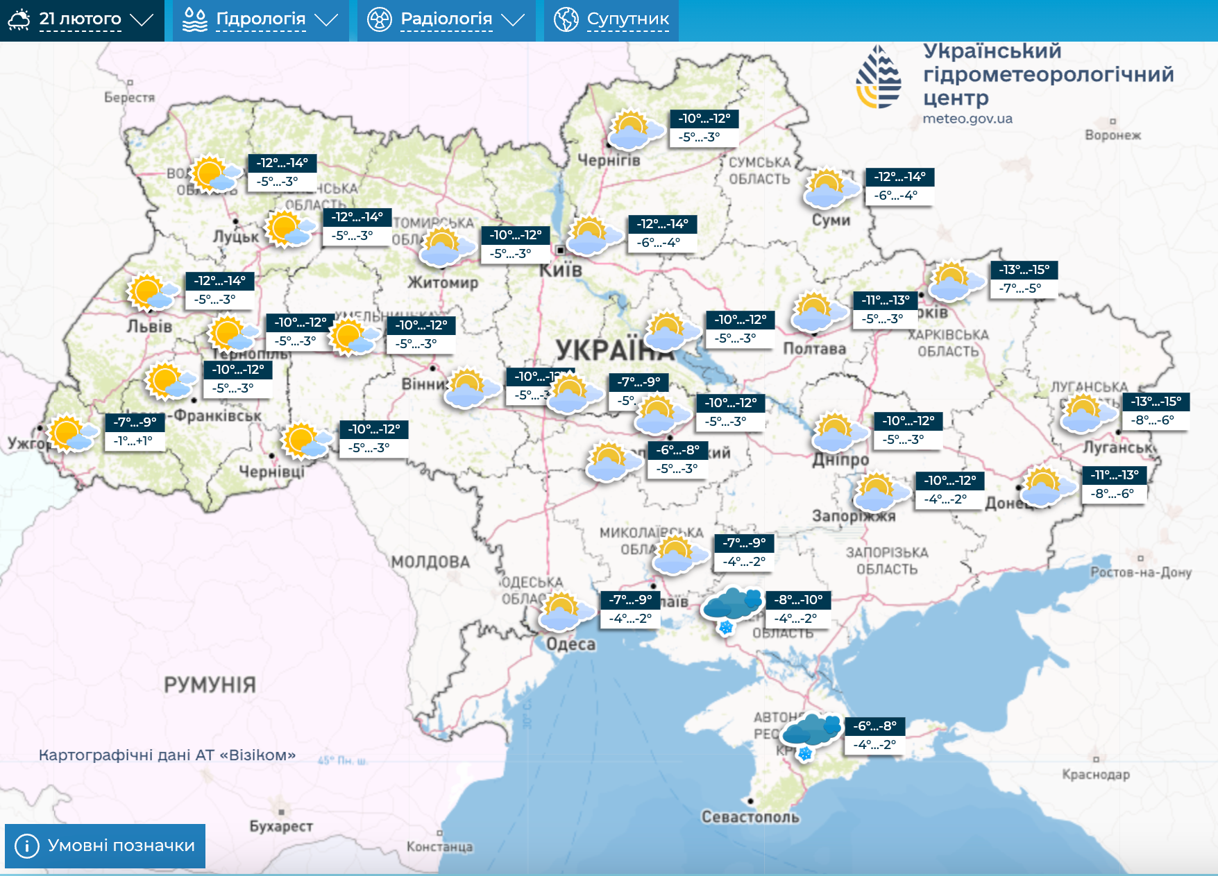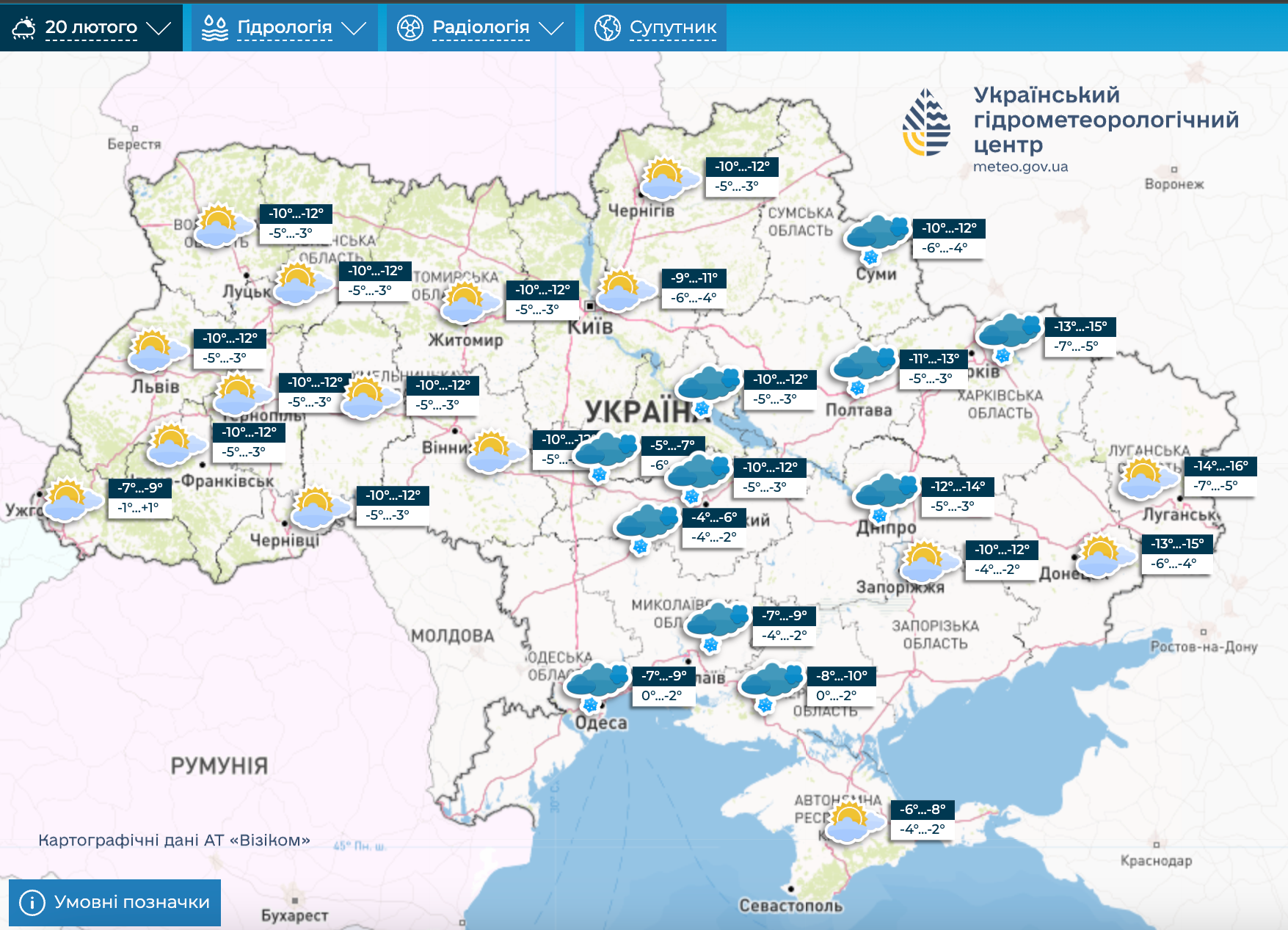Прогноз погоды на 19 – 21 февраля / Скриншот с Укргидрометцентра
