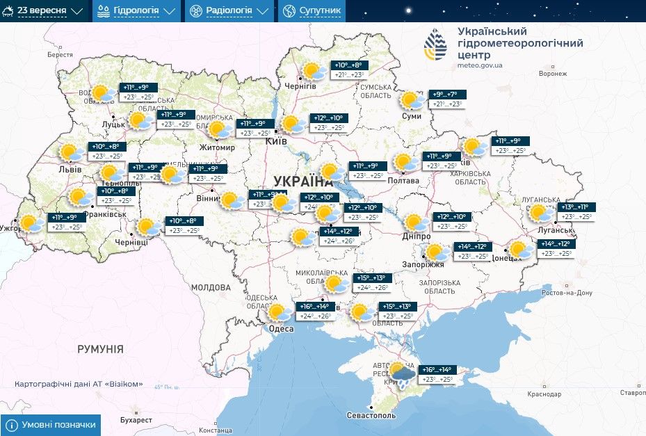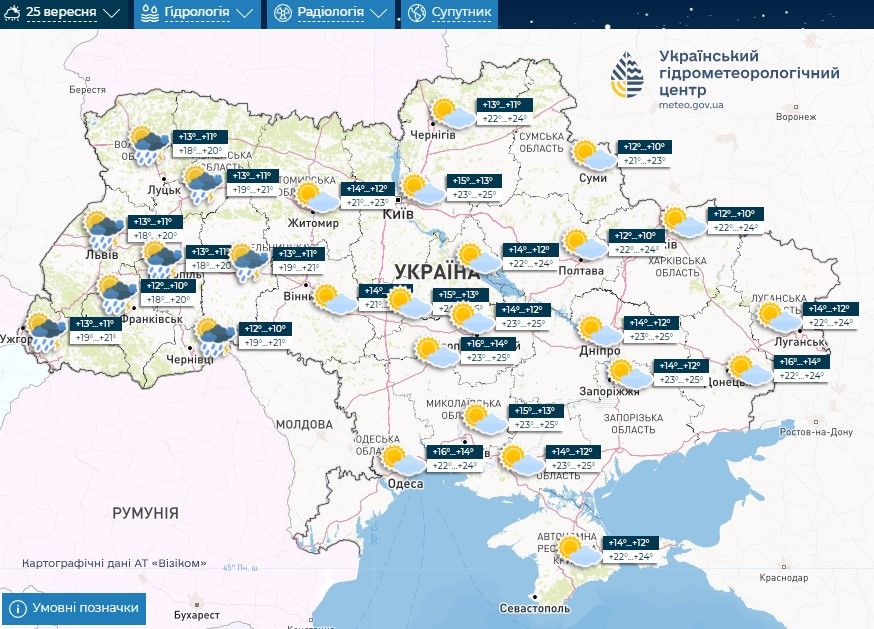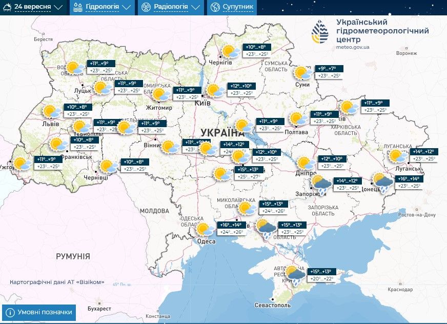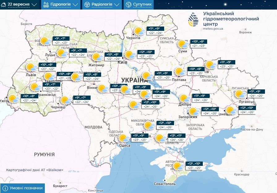 Прогноз погоды на 22 – 26 сентября / Скриншоты из Укргидрометцентра
