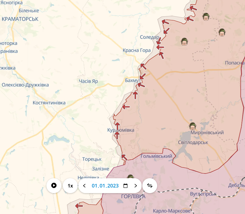 Пожалуй, события, которые имели наибольшее влияние на фронт российско-украинской войны в 2023 году, разворачивались в Бахмуте и его окрестностях. Здесь активные наступательные действия хотя бы одной из сторон не останавливались практически в течение всего года.