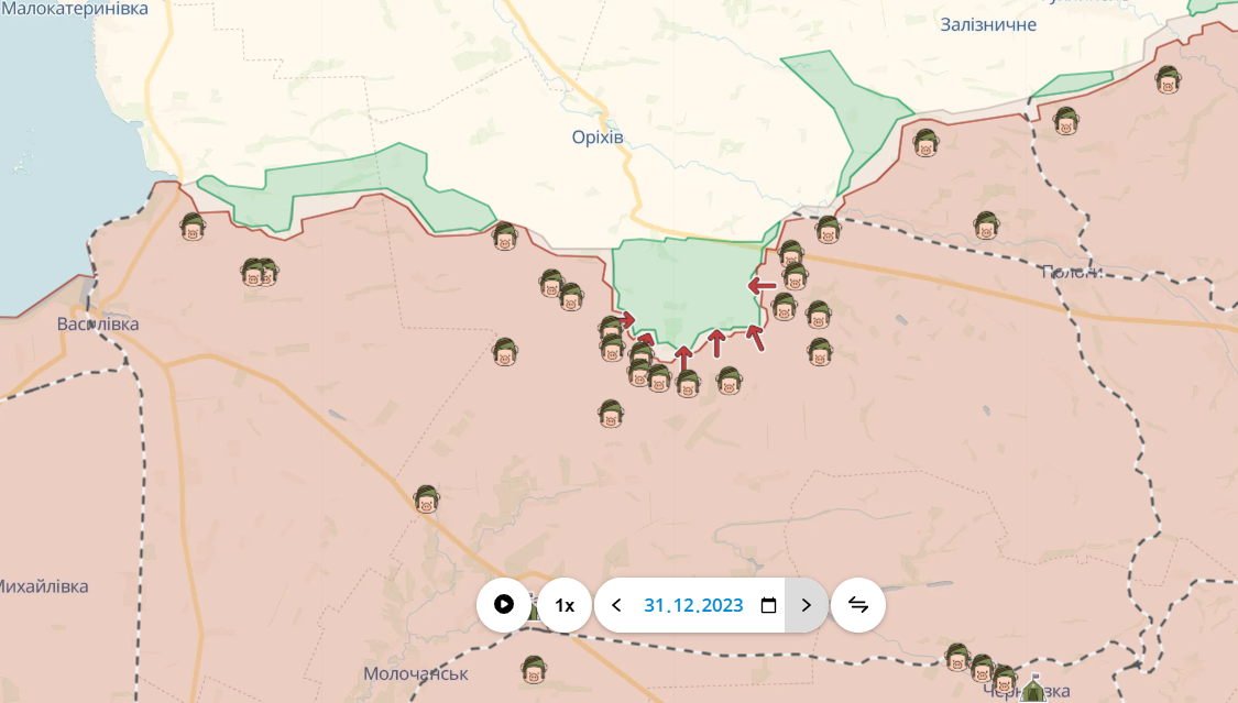 По состоянию на конец года враг пытается вести штурмовые действия из Лимана Первого в сторону Синьковки, а также из Орлянки в сторону Степовой Новоселовки. Планы по оккупации Купянска пока выглядят не совсем реалистично.