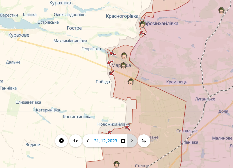 После начала полномасштабного вторжения россияне прибегли к новым попыткам оккупировать Марьинку, но наткнулись на сопротивление украинских войск. Бои в городе шли до самого конца 2023 года.