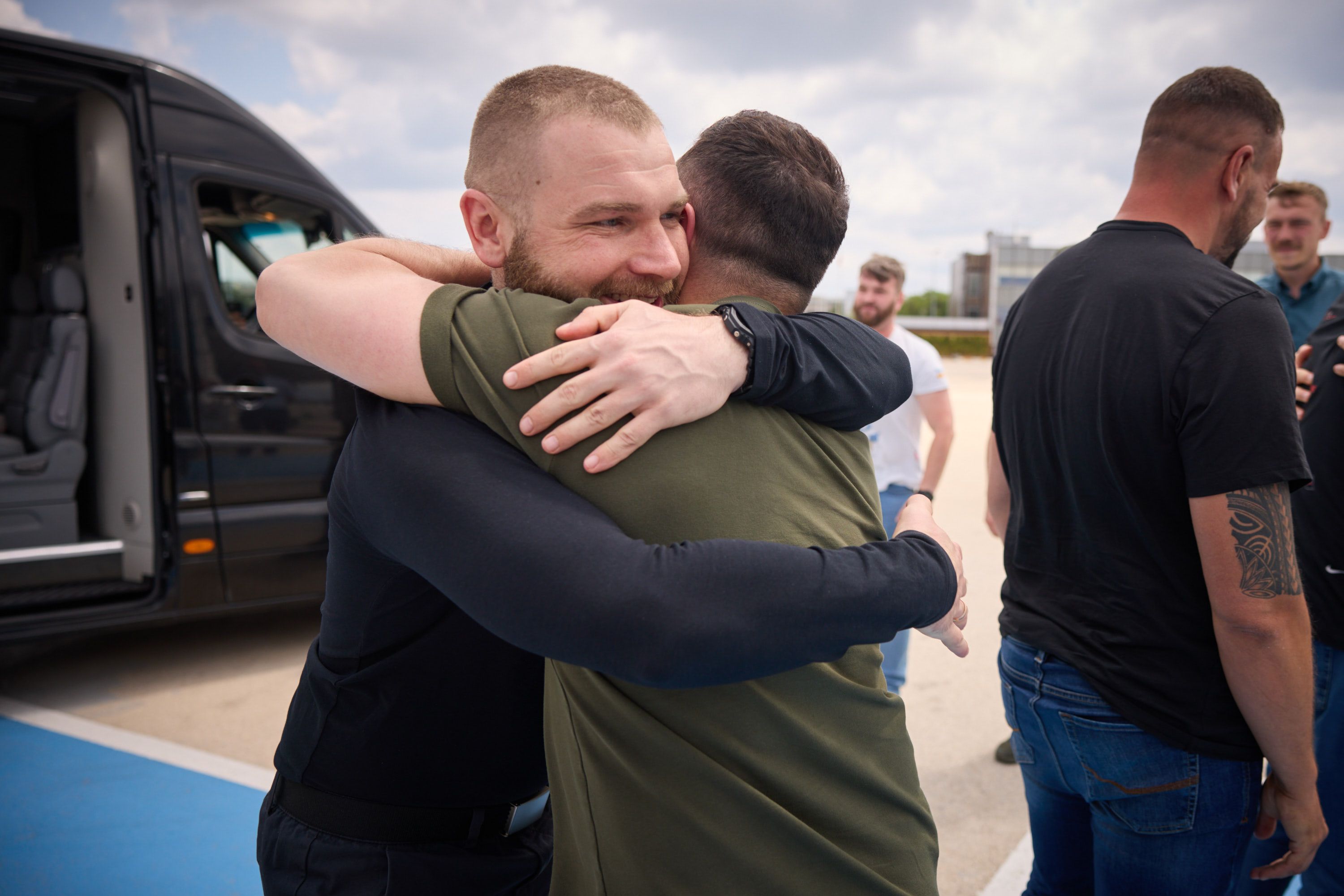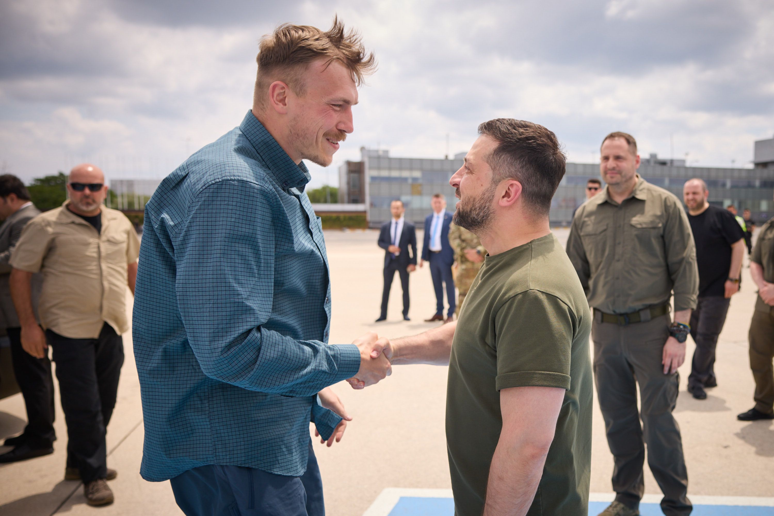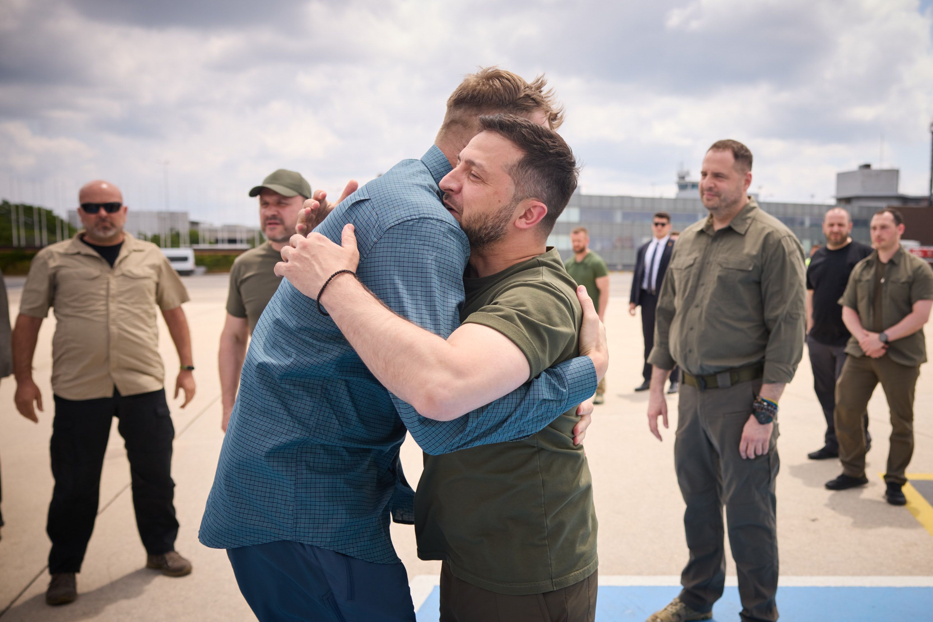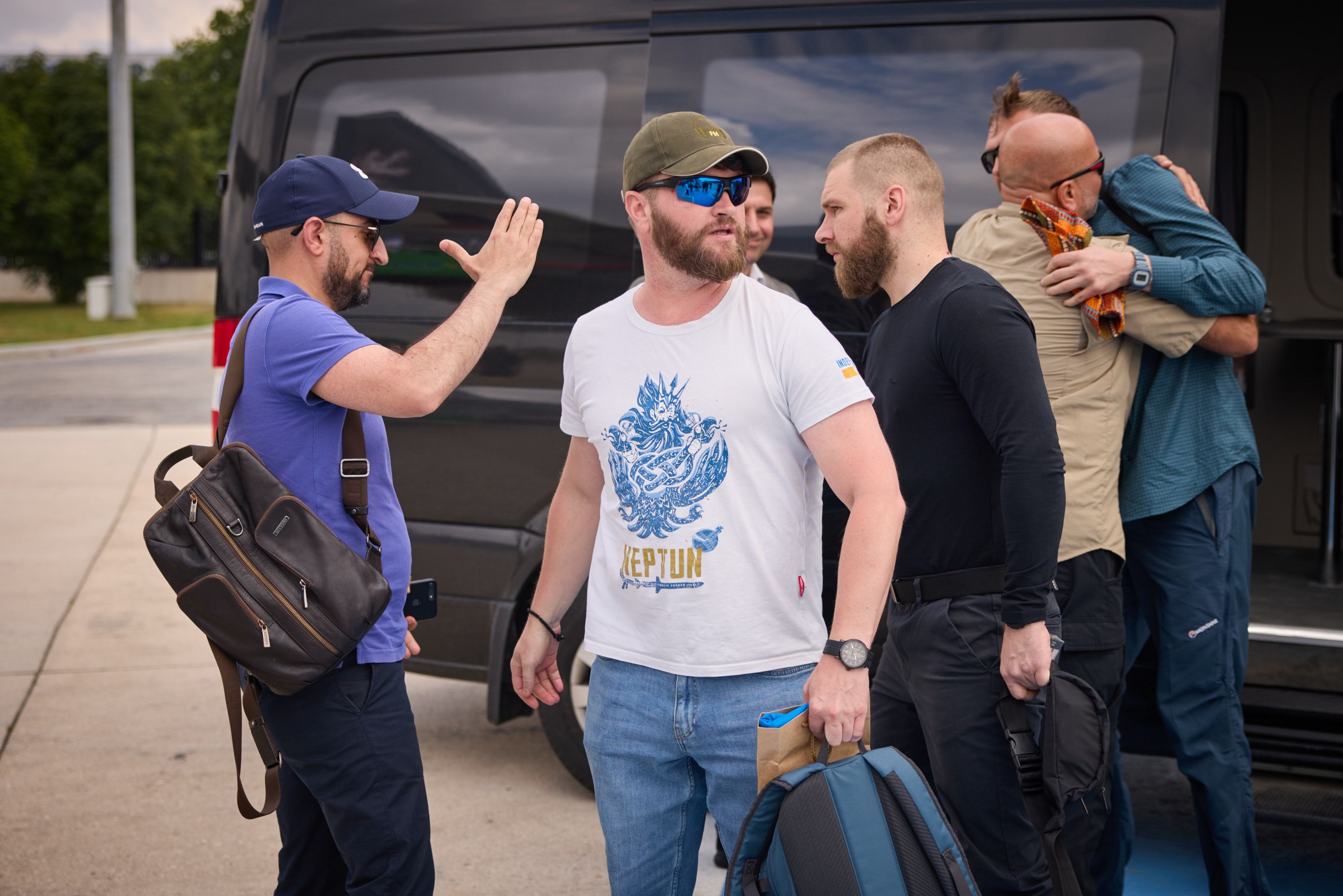 Впоследствии опубликовали кадры, на которых видно, как Владимир Зеленский, глава Офиса Президента Андрей Ермак и глава МВД Игорь Клименко встречают защитников на аэродроме. Оттуда они сели на самолет, чтобы отправиться домой.