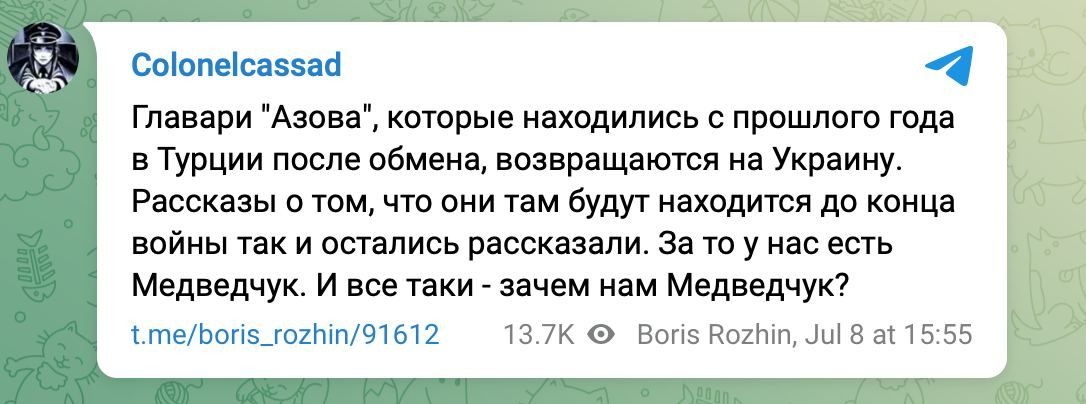 Владимир Зеленский 8 июля сообщил радостную новость: командиры "Азовстали" вылетают из Турции. В Украину возвращаются: