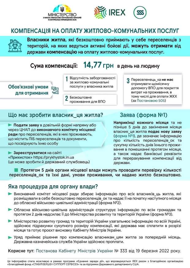 Потом владелец жилья должен зарегистрироваться на сайте "Прихисток". Обновлять заявление следует каждый месяц. Детальнее обо всем можно прочесть в инфографике.