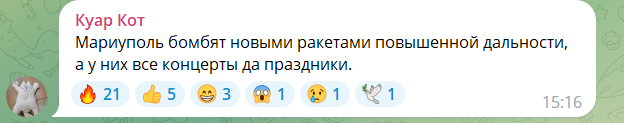 - "Мариуполь бомбят новыми ракетами повышенной дальности, а у них концерты и праздники"