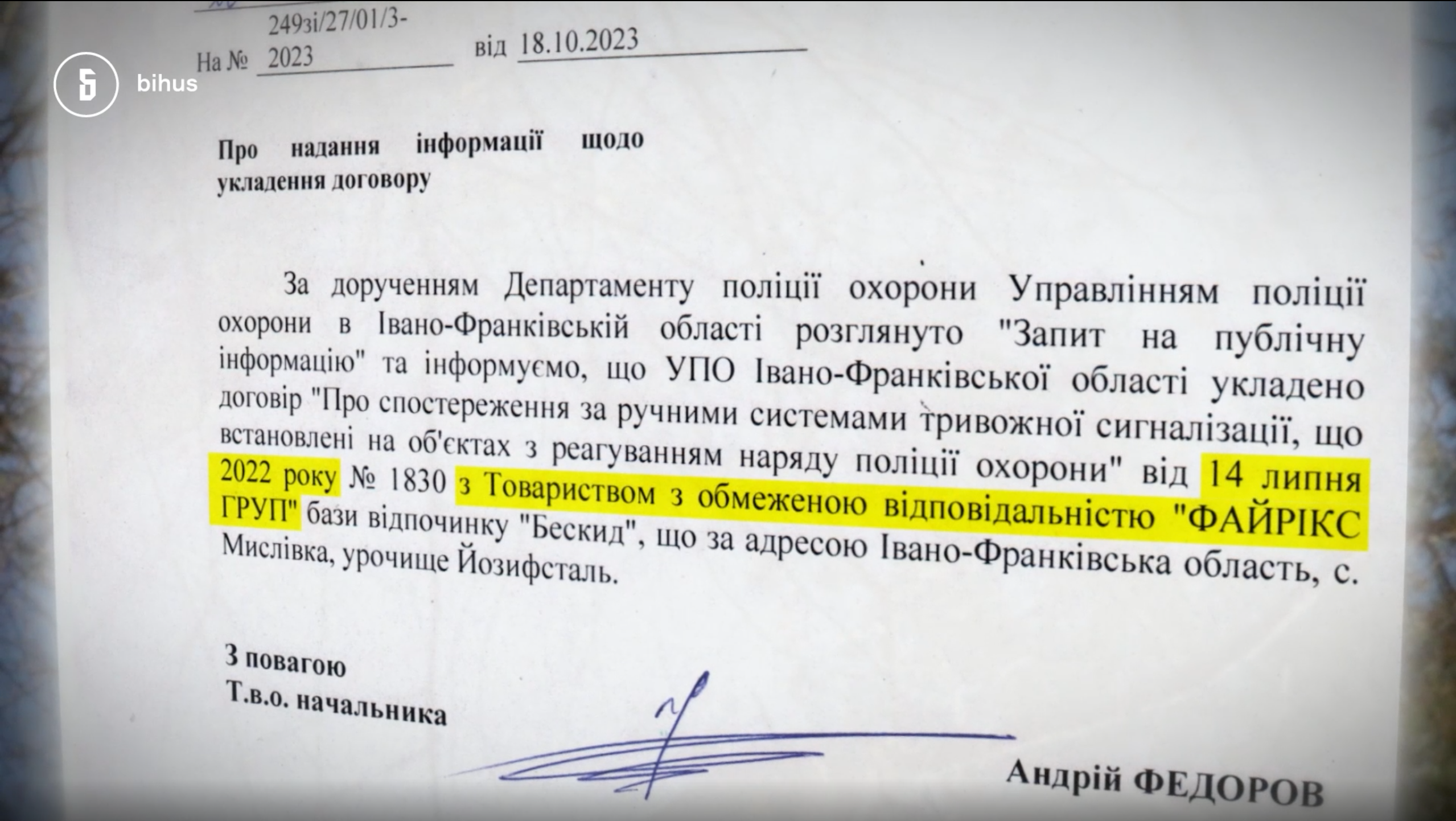 Автор подчеркнула, что полицию охраны в гостиницу Медведчука наняла компания ООО "Файрикс Груп", а дата заключения договора в гостинице "Бескид" - июль 2022 года. У управления полиции охраны в Ивано-Франковской области, договор на наем охранников полиции до сих пор действует.