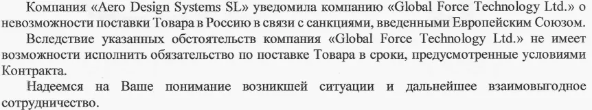 В свою очередь "Global Force Technology Ltd." подписала контракт с уже известной нам испанской компанией Aero Design System S.L.
