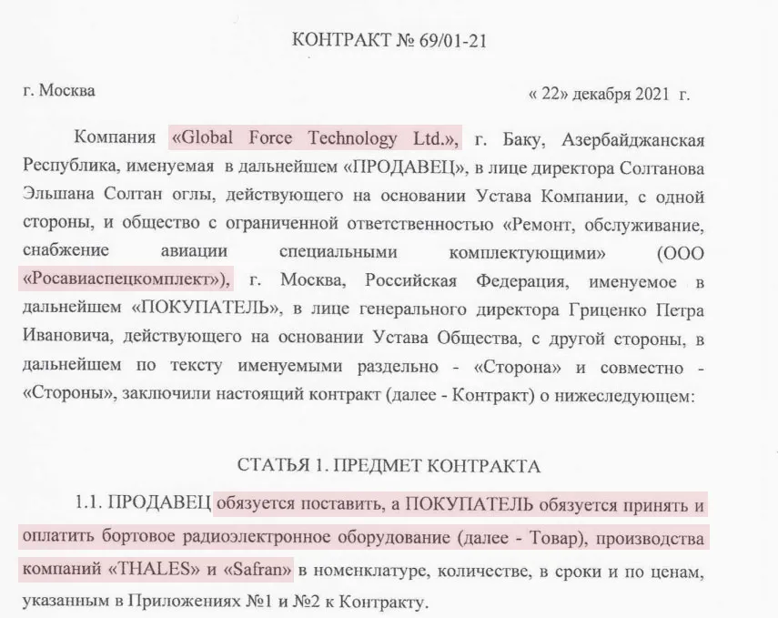 Несмотря на то, что изначально "Росавиаспецкомплект" сотрудничала с румынской компанией Кучера, соглашение о поставке французского оборудования она подписала с азербайджанской компанией "Global Force Technology Ltd."