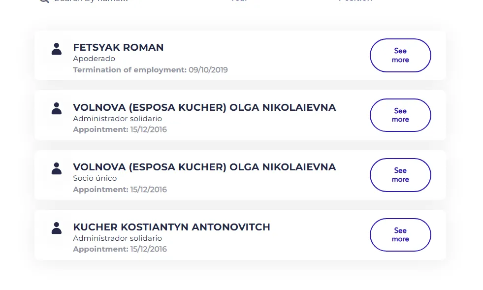 Список лиц связанных с испанской компанией ADS/ Источник Infoempresa