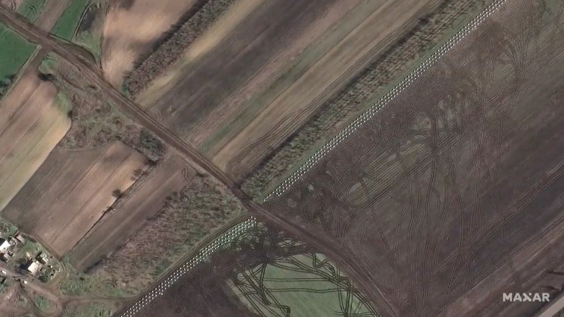 Спутниковый снимок, на котором изображены противотанковые барьеры в виде "зубцов"