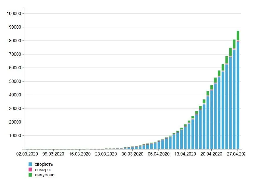 Российская Федерация обогнала по количеству больных COVID-19 Китай. Согласно последним данным (на 27 апреля), у нашего северного соседа зафиксировано уже более 87 тысяч больных. В Китае же их почти 84 тысячи. Об этом говорится в новости 24 канала.