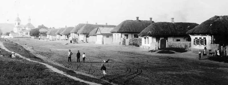 Село Белянское, нач. 20 века. Видим типично украинские дома, а на заднем плане – Архидияконо-Стефановская церковь, построенная Степаном Тарановым и названная в честь его небесного патрона / Фото из архивов Музея истории Старокраматорского машиностроительного завода