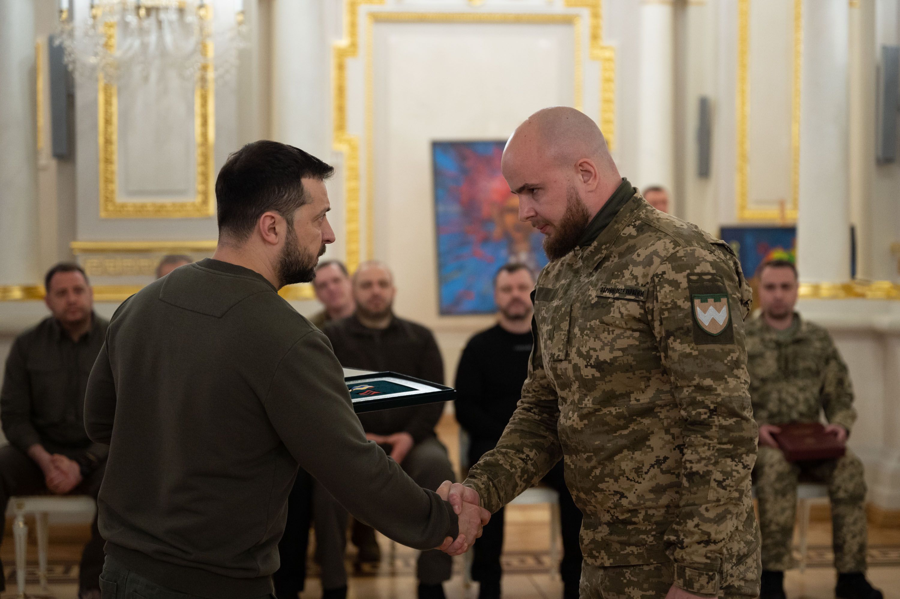 - "Золотую Звезду" Героя Украины – штаб-сержанту Александру Костенко, который в составе мобильной группы обезвредил вражеские позиции, а также уничтожил склад боеприпасов и технику оккупанта в Бахмуте;