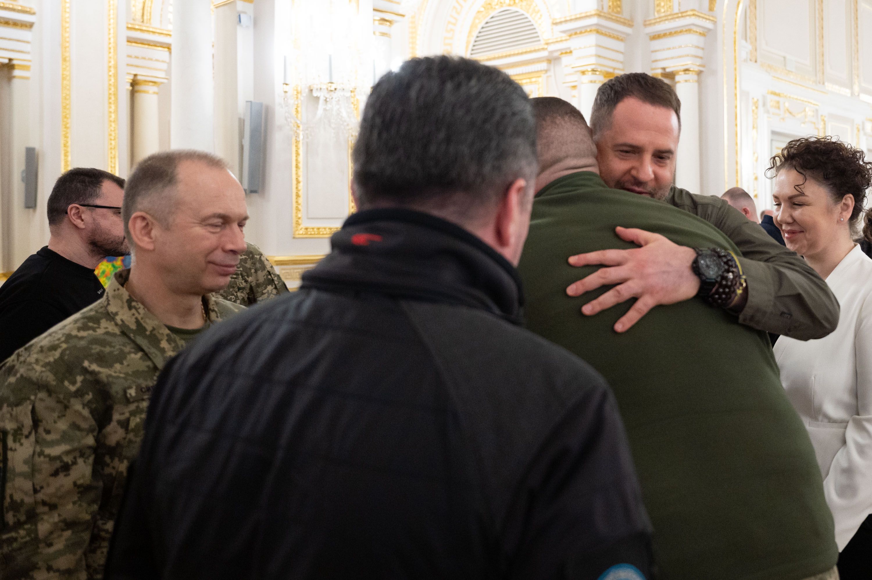 Во время награждения Верховный главнокомандующий и бывший Главнокомандующий крепко обнялись.