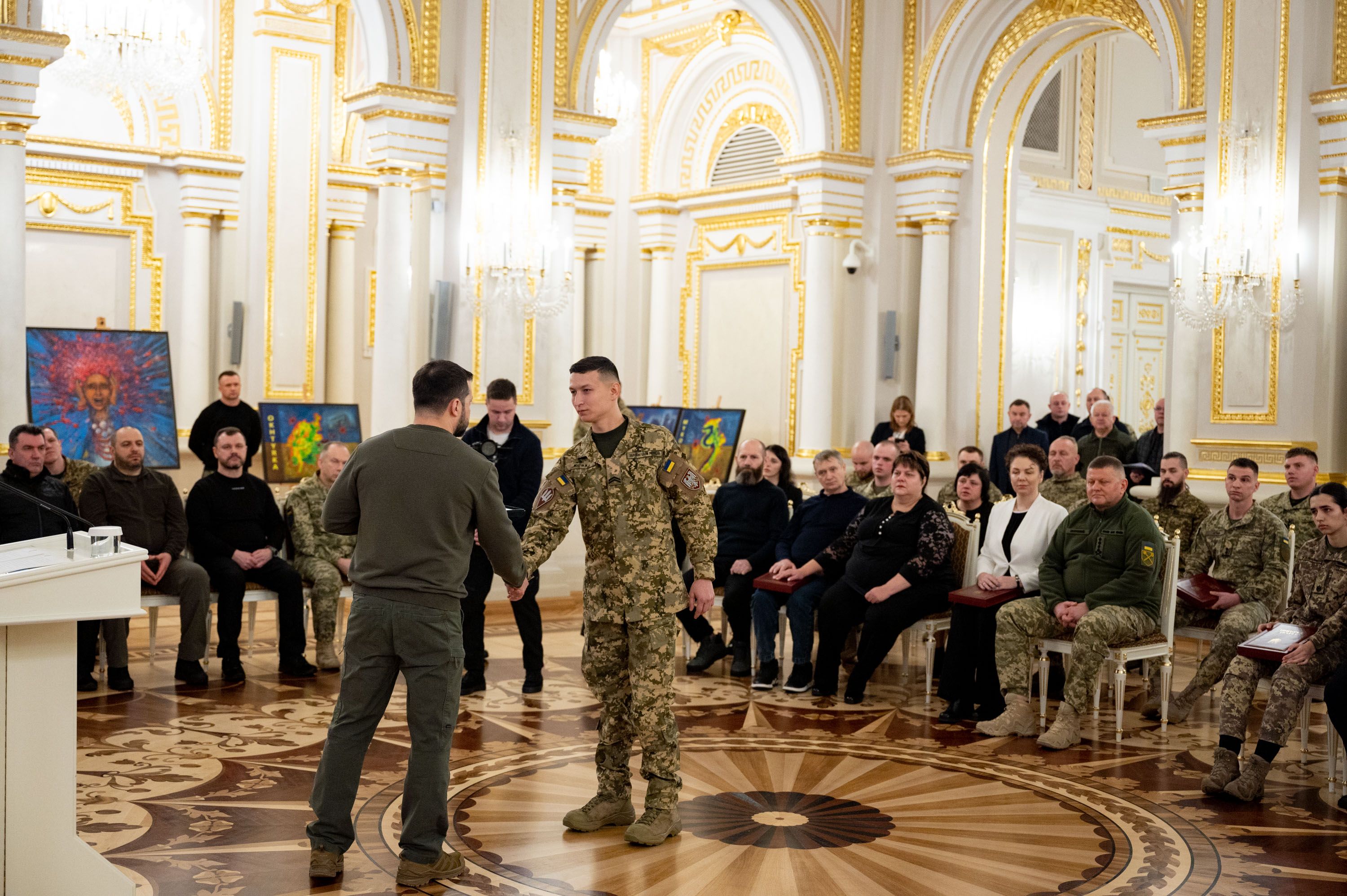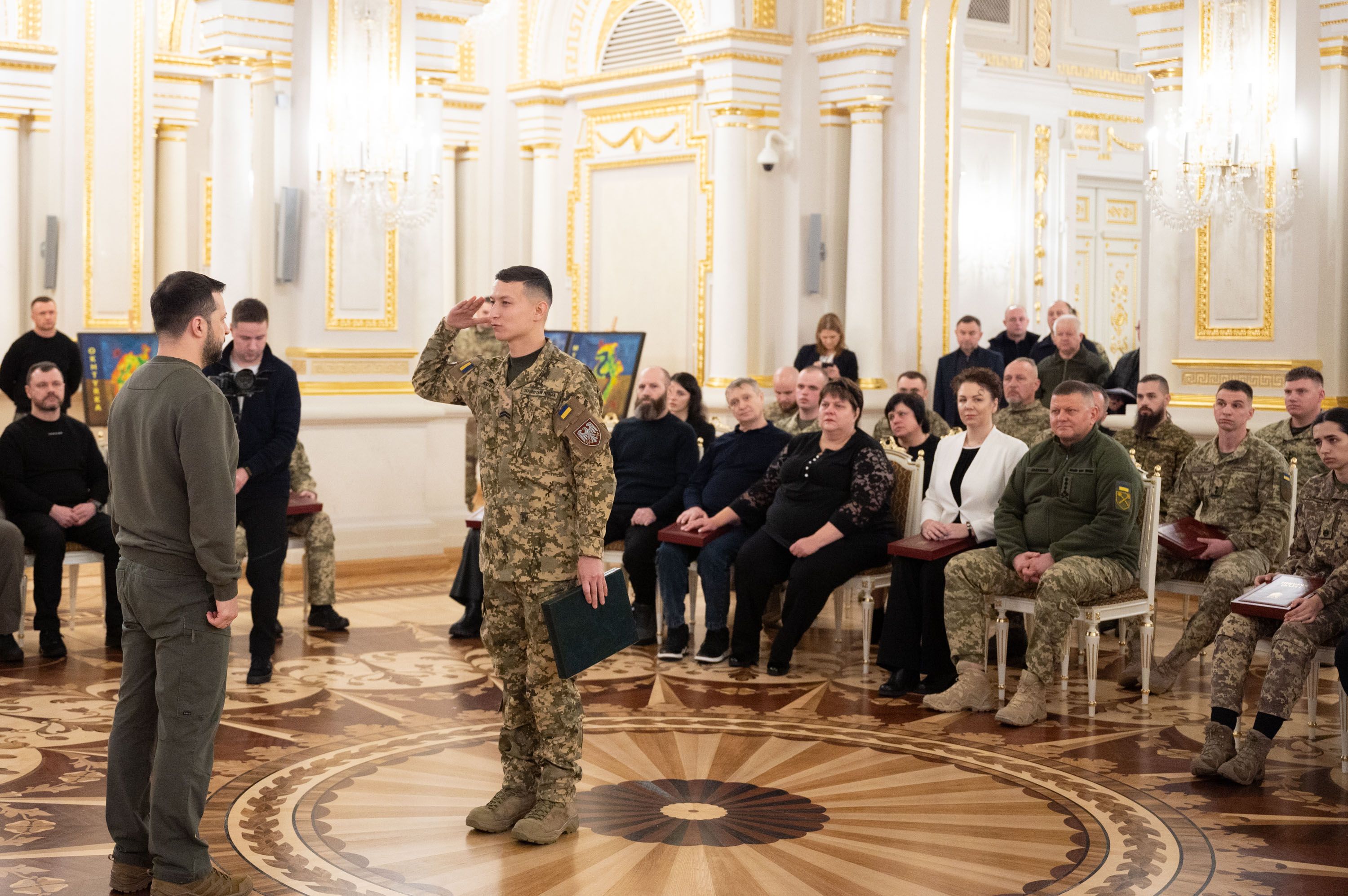 - за выдающиеся личные заслуги в защите государственного суверенитета и территориальной целостности Украины, самоотверженное служение украинскому народу присвоил звание Героя Украины и вручил орден "Золотая Звезда" Главнокомандующему ВСУ в 2021 – 2024 годах генералу Валерию Залужному;