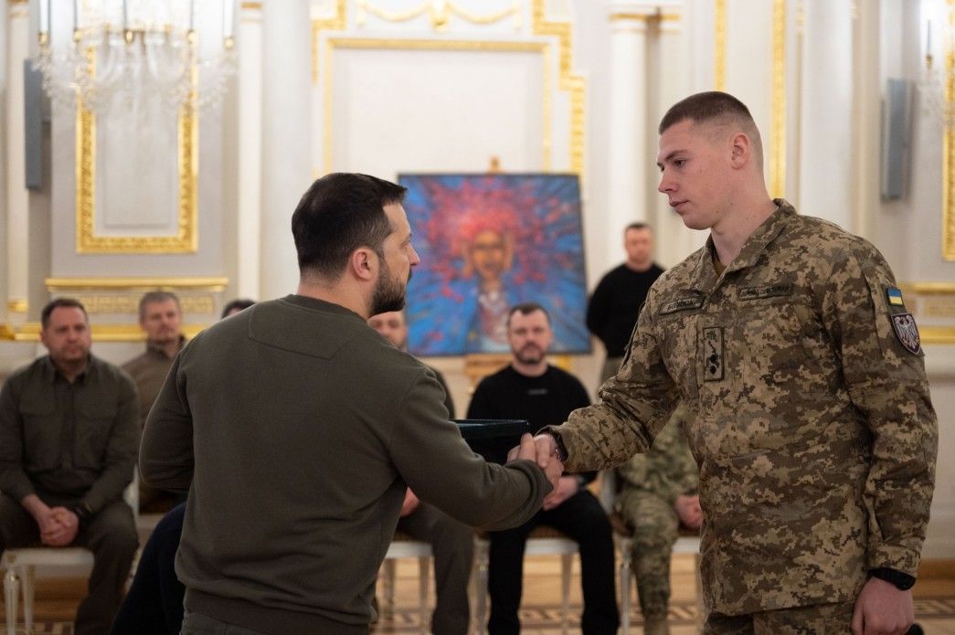 Также Владимир Зеленский вручил награду президента "Крест боевых заслуг" военным ВСУ: лейтенанту Любомиру Болибоку, главному сержанту Анатолию Бицуле, майору Николаю Дубилеву, младшему лейтенанту Виталию Запрудскому, штаб-сержанту Александру Зулунову, младшему сержанту Денису Кокубаеву, солдату Богдану Коваленко и капитану Богдану Мазуренко, капитану Нацгвардии Ростиславу Чиникину.