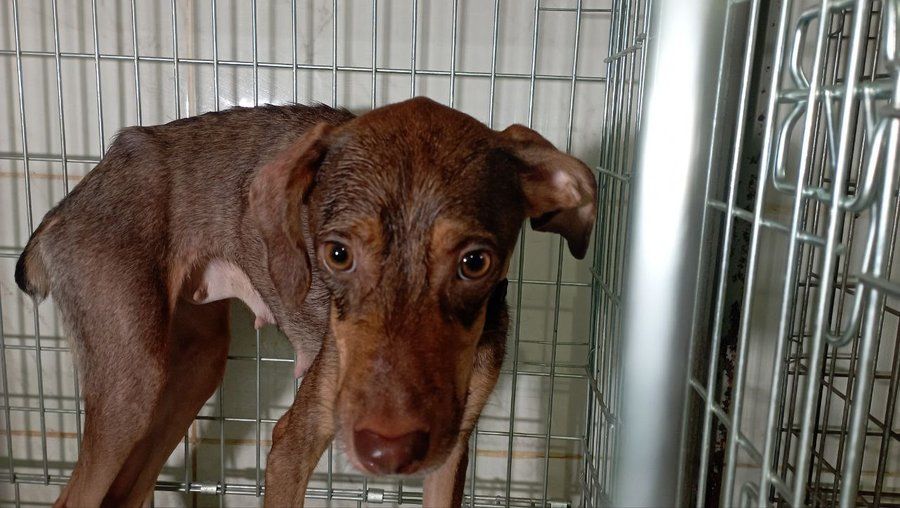 Когда собак нашли, щенок уже был на грани смерти, его пришлось реанимировать. До утра песик не дожил бы. Мама тоже в тяжелом состоянии. Она потеряла половину своего веса. Одни ребра.