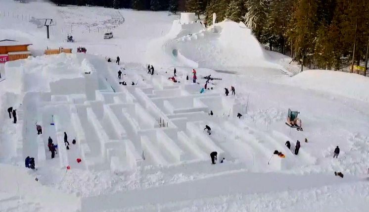 Исполинское сооружение разместили в курортном городке Закопане, у подножия Татр. Лабиринт состоит из 60 тысяч ледовых кирпичей. А возводят его 40 профессиональных строителей.