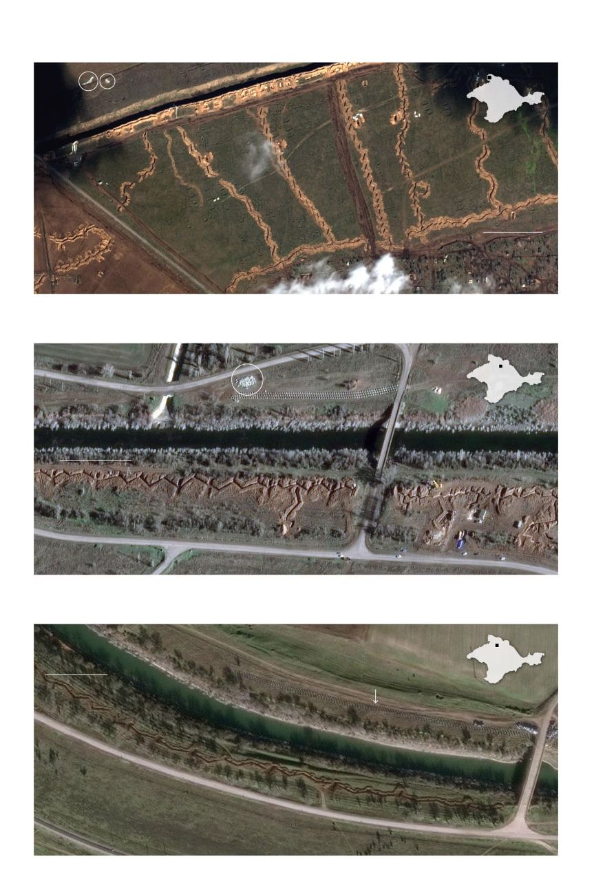 Кроме того, террористы готовят укрепления вдоль Северо-Крымского канала и в Армянске. 12 марта на спутниковых снимках можно увидеть, что окопы вырыли на севере, западе и вблизи села Витино.