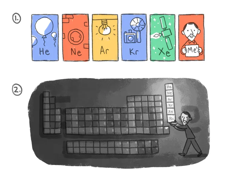 По случаю 167-летия со дня рождения сэра Уильяма Рамзая художник Кевин Лафин создал замечательный дудл, который демонстрирует огромный вклад Рамзая в мировую науку.