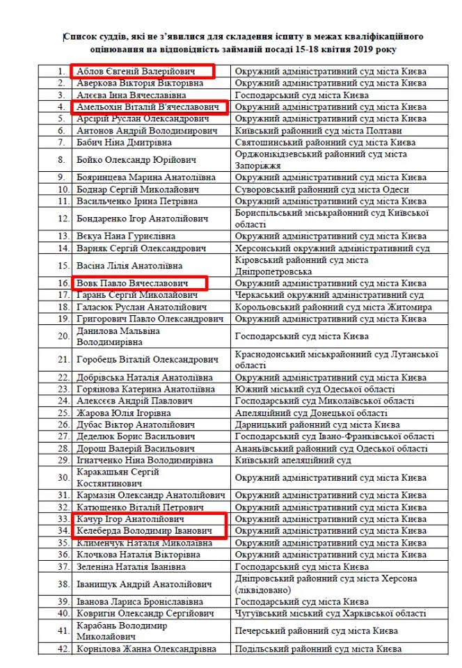 Список суддів, які не з'явилися